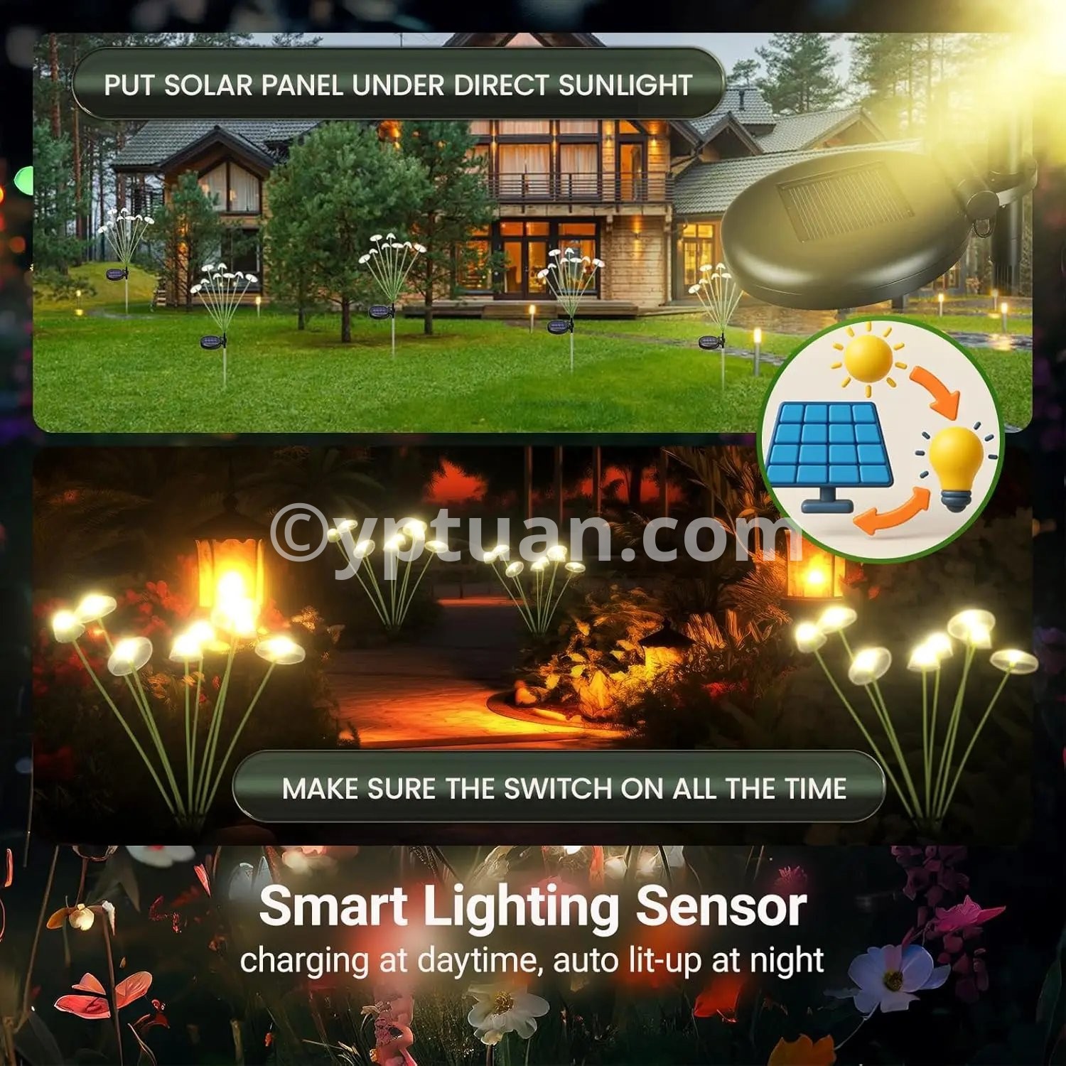 Solar Pathway LED Garden Festival Lights Outdoor Energy-Efficient Semi Flush Mount Lamps for Walkway Driveway Landscape Camping