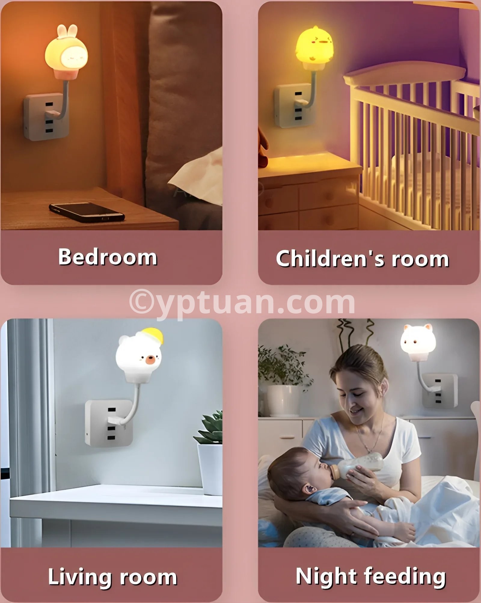 1. Three level brightness adjustment, it's super suitable for mom to feed baby at night. 2. Better for baby room, bedroom, bathroom, Bedside,Living Room Portable And Charging Port 3. Simple, beautiful and practical, easy to operate with remote control. 4. LED light source, low power consumption, long working lifespan, odorless, environmentally friendly. Cute Design And Multi-application 5. Cartoon animals design, kind/children will be love it. 6. It is a dreamy creative gift for Christmas, Valentine's Day, birthday, party, wedding, anniversary, housewarming, lover, children, children's bedroom, living room, nursery.