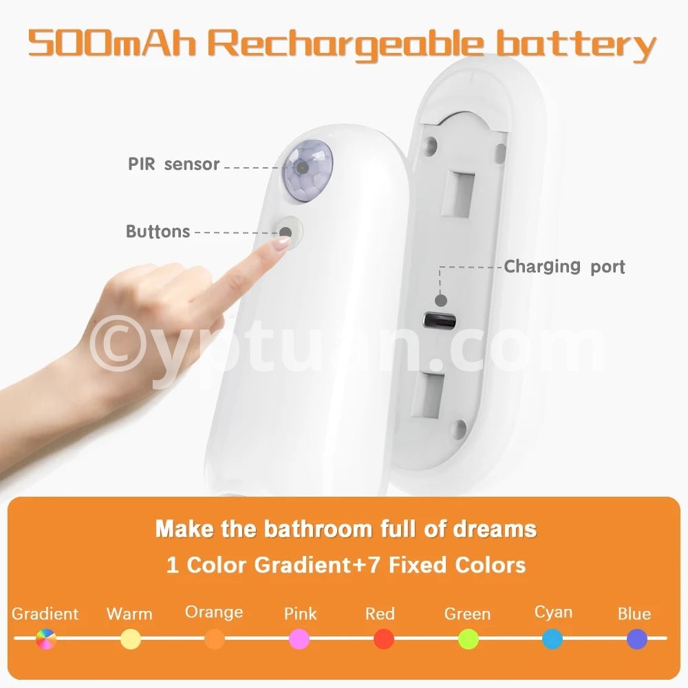 Energy saving - When the light detects sufficient brightness, it will automatically turn off, saving energy and extending battery life. It can also detect movement, so it is only activated when using the bathroom. Easy to install - The toilet light has a hanging plate that can be attached underneath the toilet seat. This device is activated through motion detection and only reacts in the dark. Installation and disassembly are very simple and do not require tools. Just place the light on the side of the toilet and you're done. Lightweight & Portable Design- Sturdy flexible arm can be installed in seconds onto any toilet. Splash Proof, Easy to clean, safe to use, and works well with any toilet seat makes it an ideal for any family be it for adults, teenagers or potty training the little one. Simple and safe to use - the flexible and adjustable arm is suitable for any edge of the toilet. Low voltage current makes it energy-efficient and safe to use.