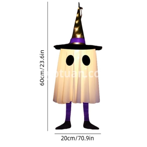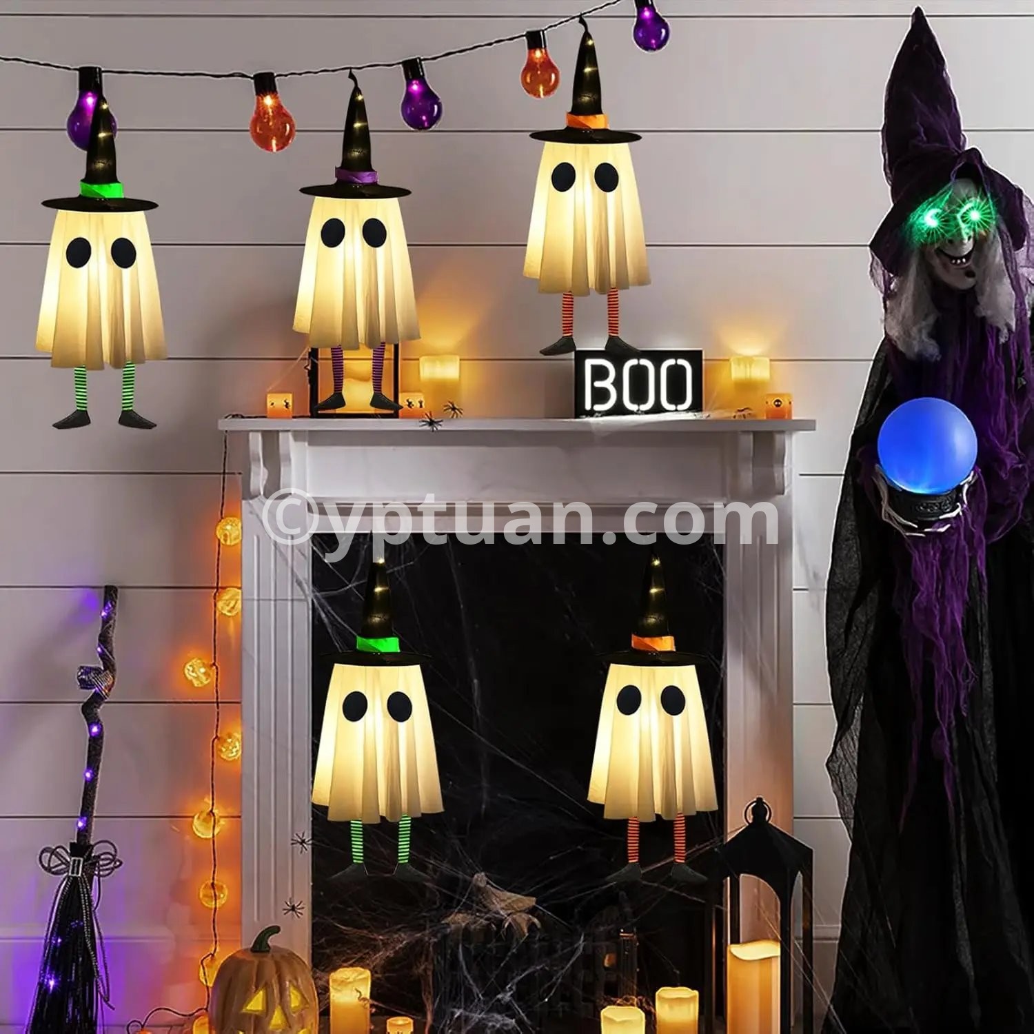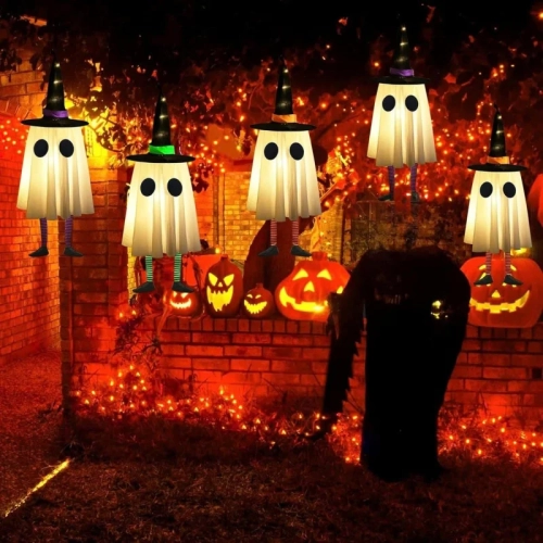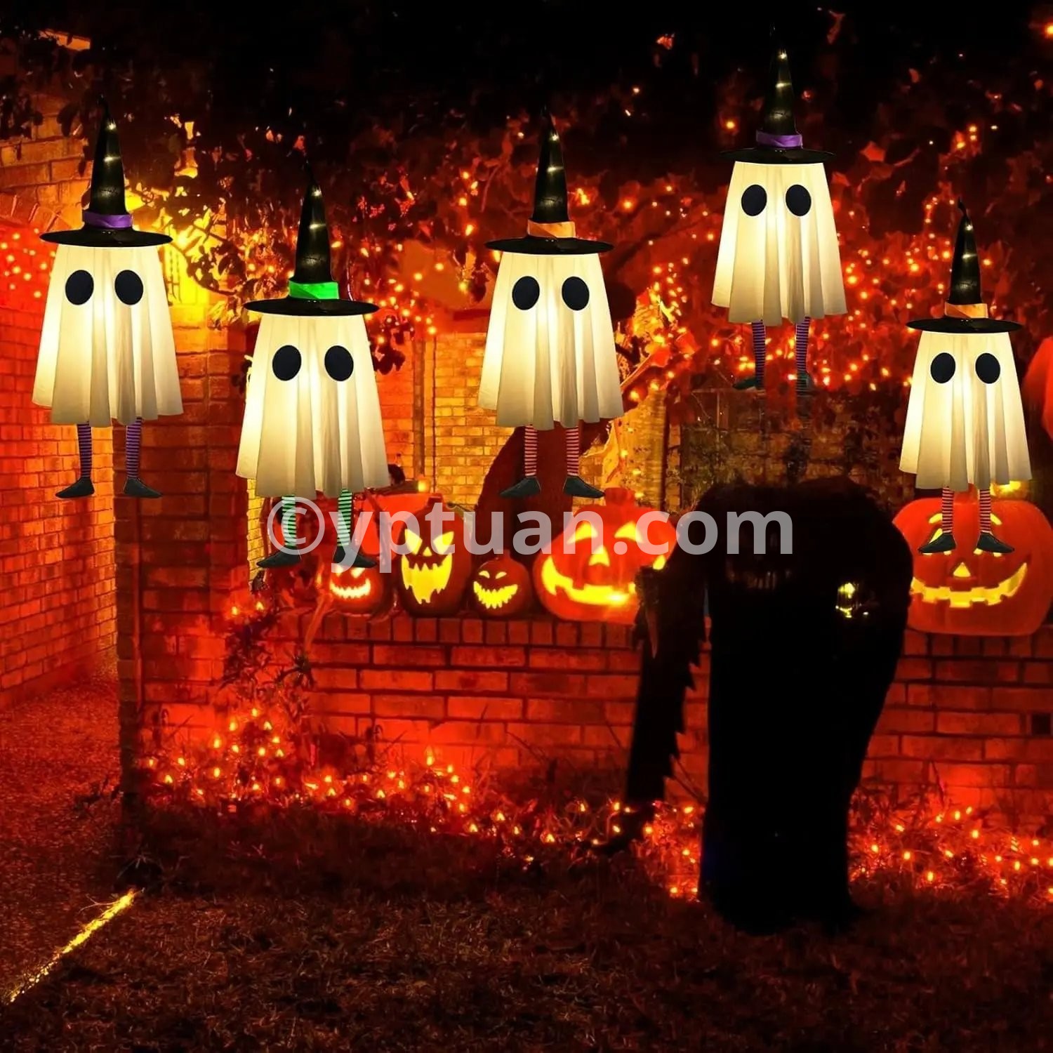 Halloween Hanging Ghost Decorations, Outdoor Halloween Witches Hat Lights, Glowing Ghosts for Garden Trees, Yard Halloween Decor