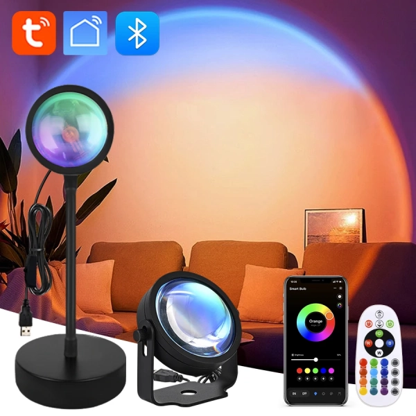 Tuya Smart Led Sunset Projector Lamp Smart Life App IR Remote Control RGB Atmosphere Spotlight Night Light for Party Photography