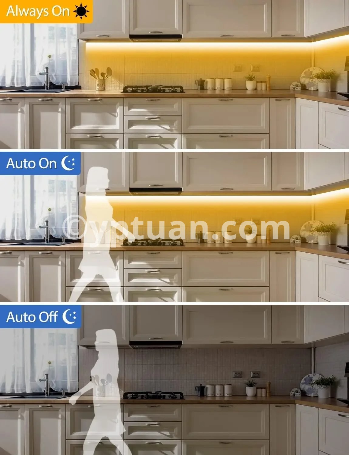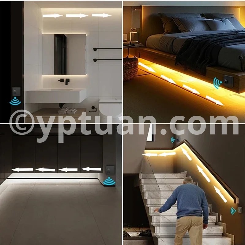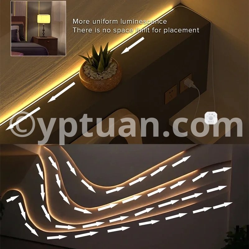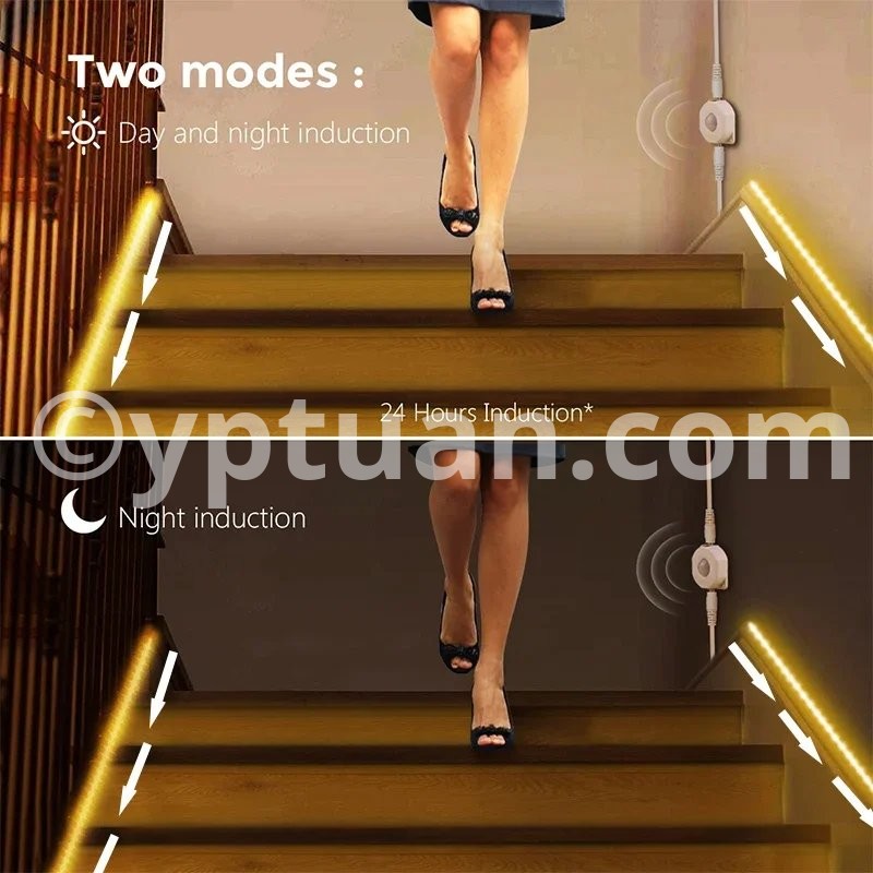 Specification: Effect:Chase Effect Working voltage: DC 5V Powered by: USB Length: 1m, 2m, 3m, 4m, 5m Detection Range: 3-4 meters Detection distance: 1M-3M Delay time: 15sec-2min (adjustable) Sensing Angle: 120 degrees Light Control: 2 modes. Mode 1: Day and Night Mode 2: Night