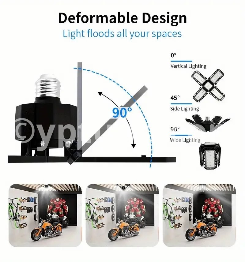 【Super Bright Garage Light】 ultra-bright adjustable LED heads top quality diodes that total 4500-10000 lumens ,CRI80+, 6000K-6500K, super bright light, no dark space, ghosting or glare, saves energy, and reduces electricity costs. It is perfect solution for your dark garage.