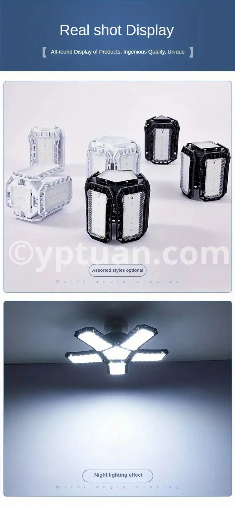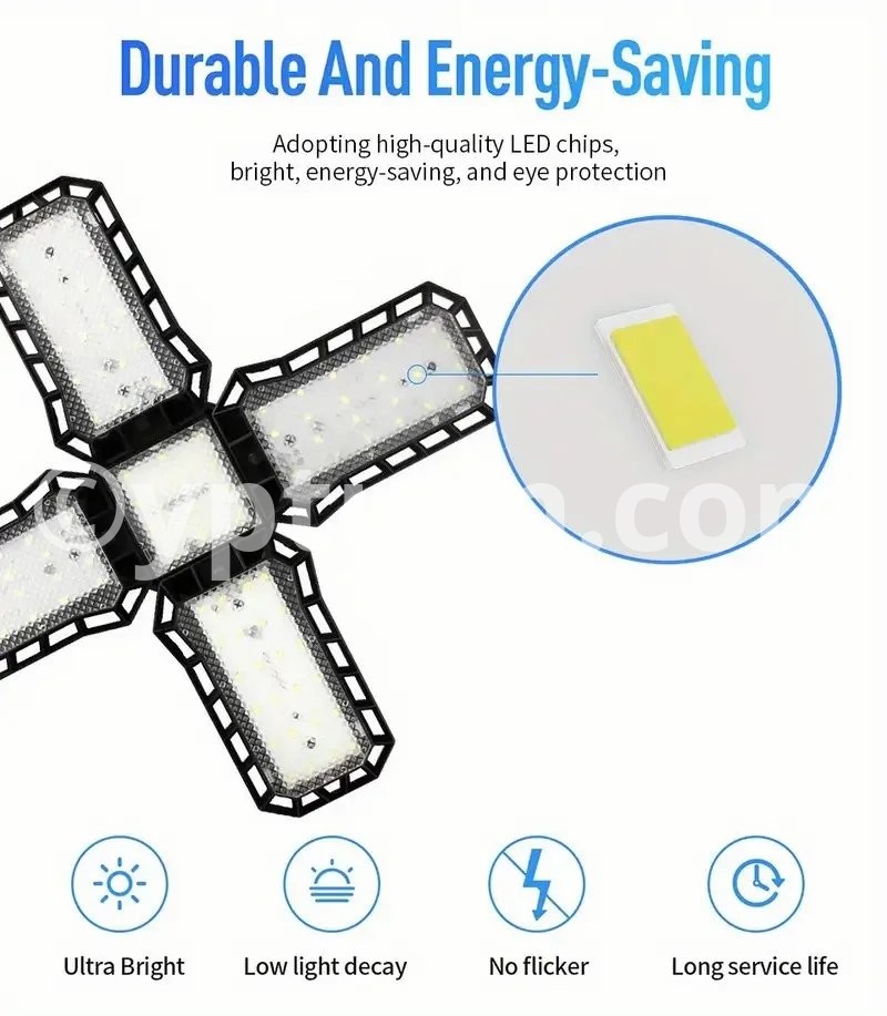 【Durable & Long Service Life】- Each LED panels are made of ABS+premium aluminum alloy, over 50,000 hours of long life.Compared the old bulbs and normal LED bulbs,this led garage light designed for solve the problems of lifespan, you no need relace few pcs bulbs or led lights in one or two years.