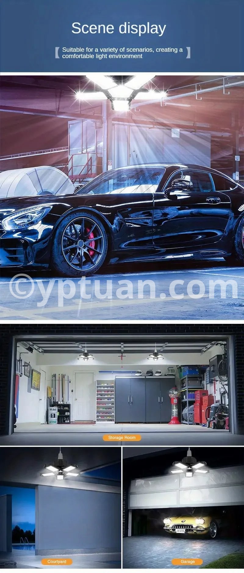 5.Application: garage, warehouse, parking lot, exhibition hall, home, etc.