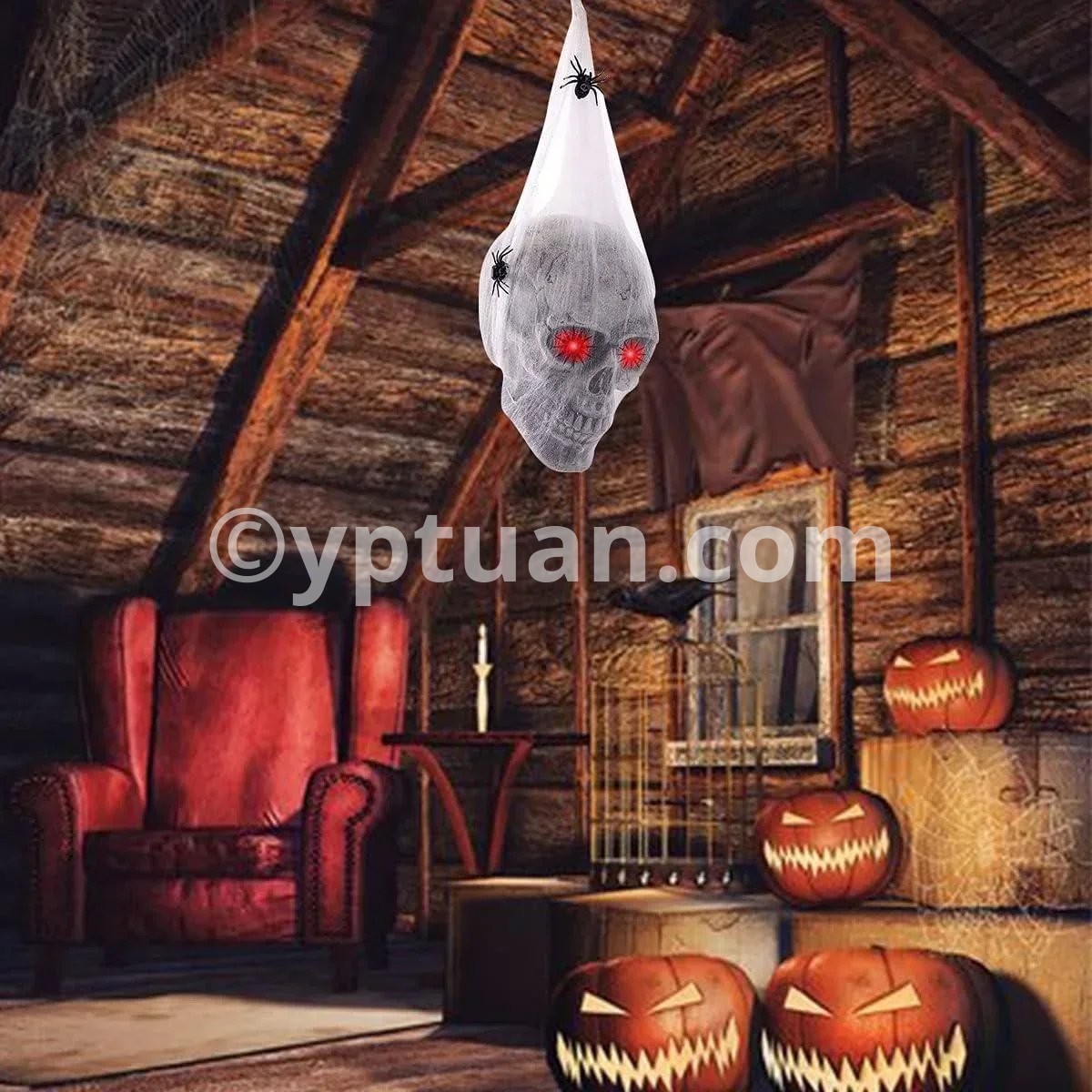 Halloween Horror Glowing Sound Control Spider Cotton Skull Prop Ghost House Secret Room Courtyard Decoration Decor