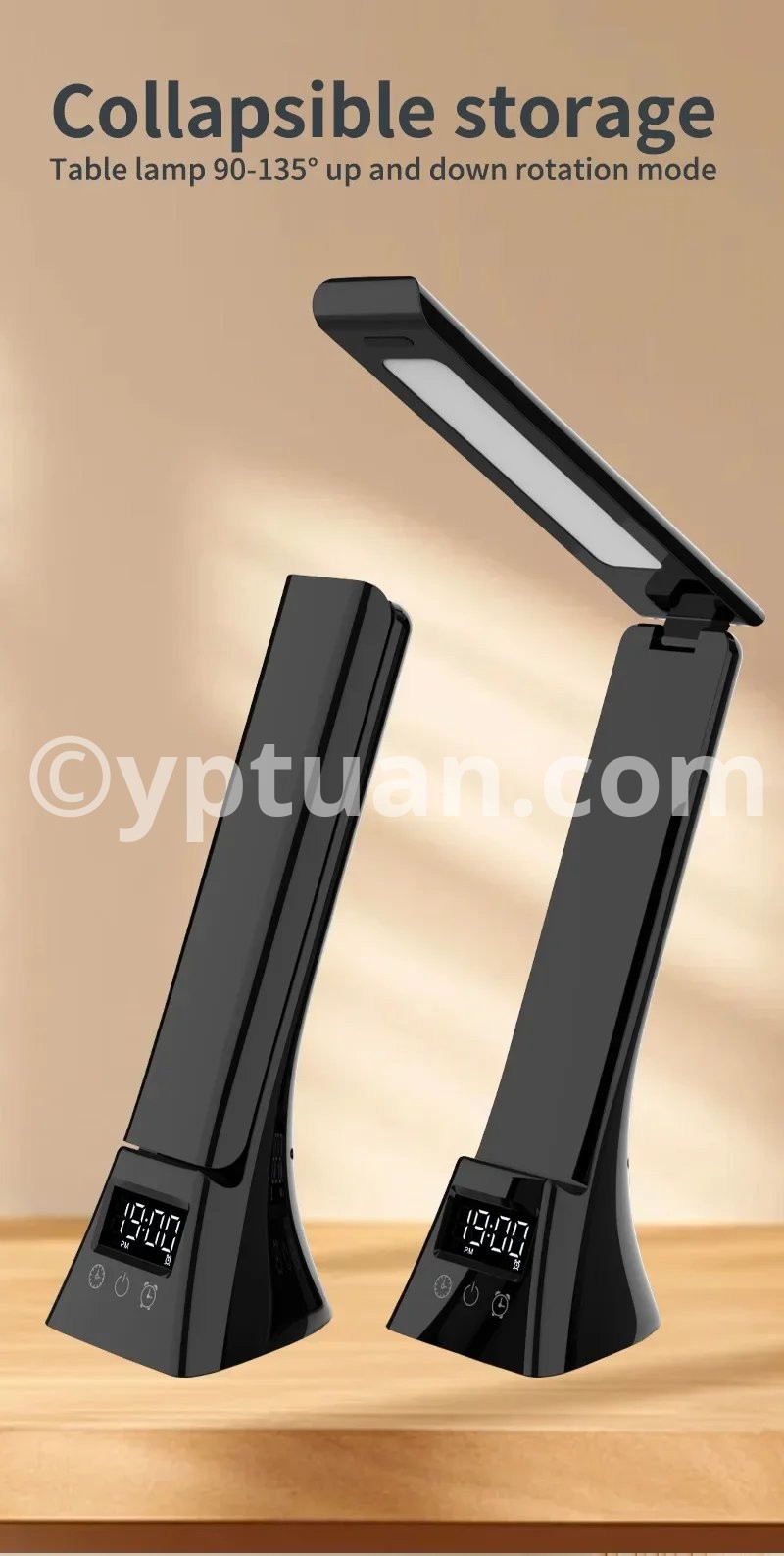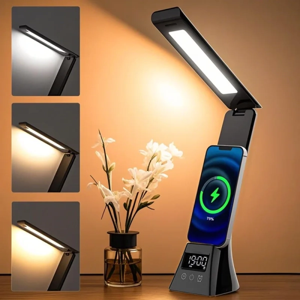LED Desk Lamp with Wireless Charger USB Powered Dimmable Table Lamp with Clock Alarm Desk Lamps for Home Office Bedroom Bedside