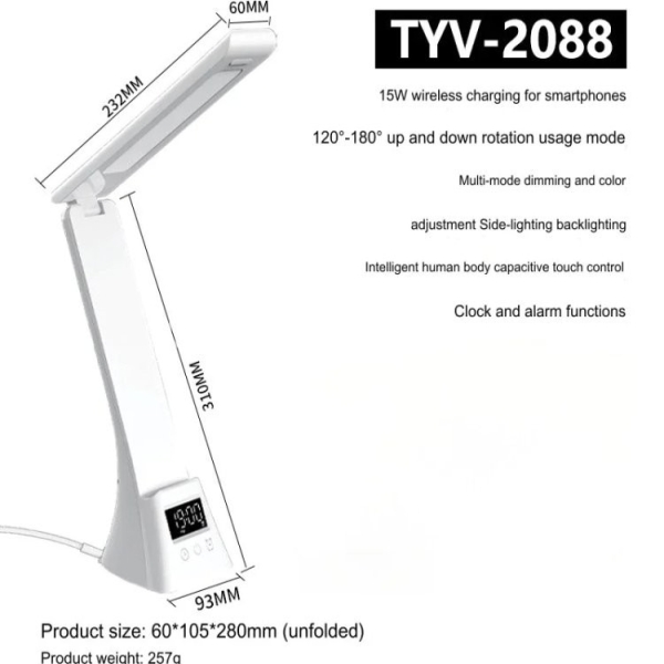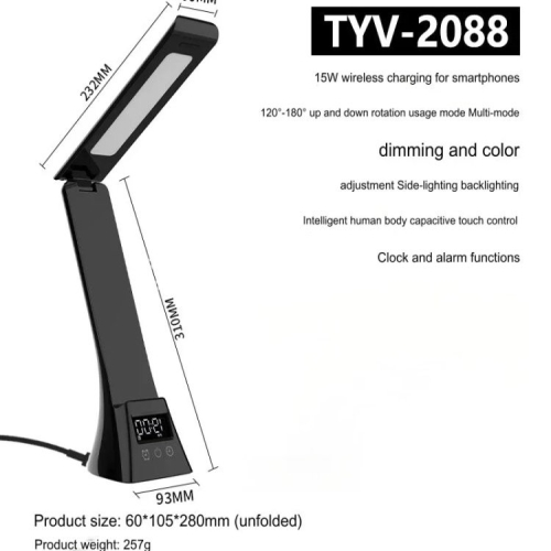 Lampshade material: PC+plastic Switch mode: Touch sensitive Color: Wireless Charging Desk Lamp - White, Wireless Charging Desk Lamp - Black Style: Modern and minimalist Voltage: ≤ 36V Power supply method: USB power supply