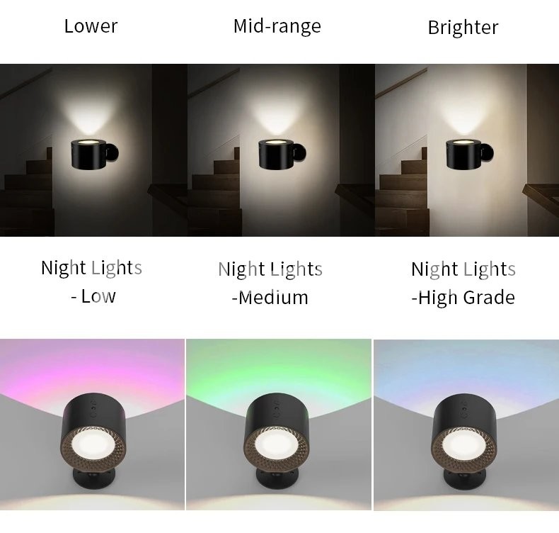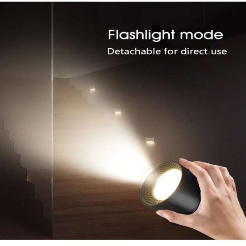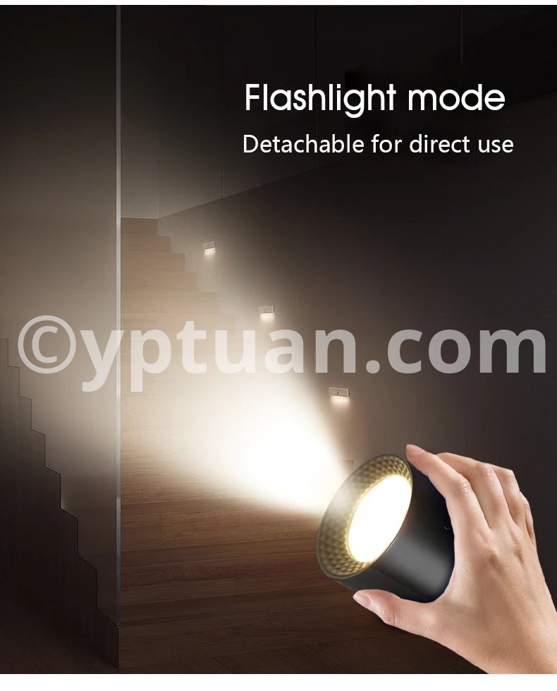 1.Magnetic & Adhesive/Screw Mounts: 360° rotating magnetic ball for adjustable lighting direction. Install via 3M adhesive (for smooth walls) or screws (for rough surfaces) – no damage, easy to reposition. 2.Detachable Flashlight Mode: Take it off the mount as a portable flashlight for emergencies, camping, or on-the-go lighting.