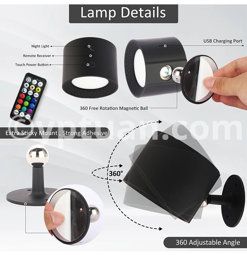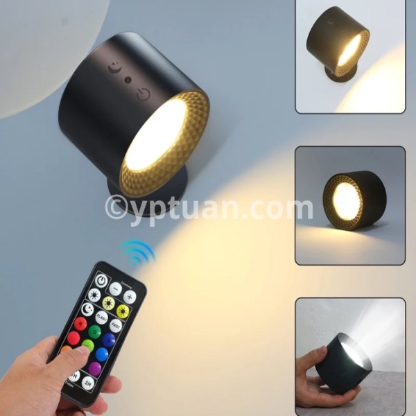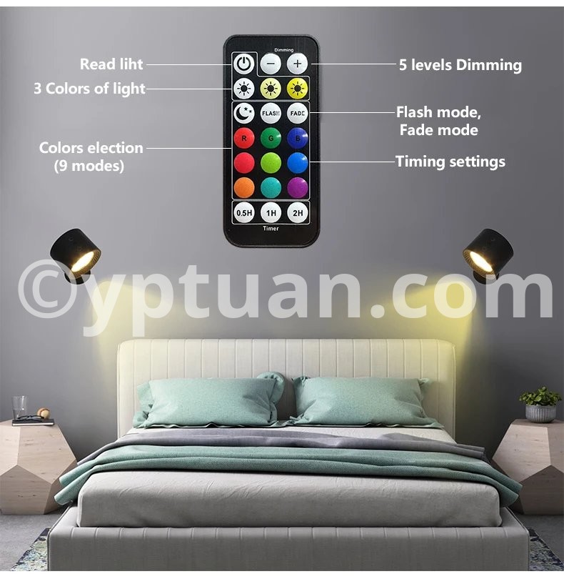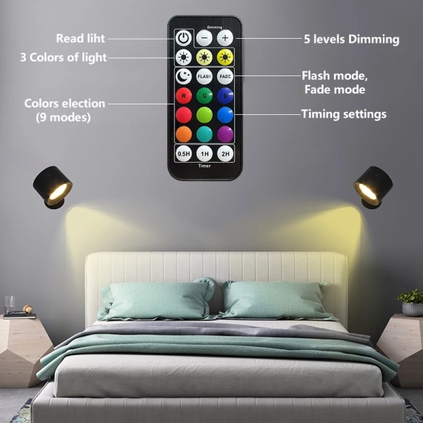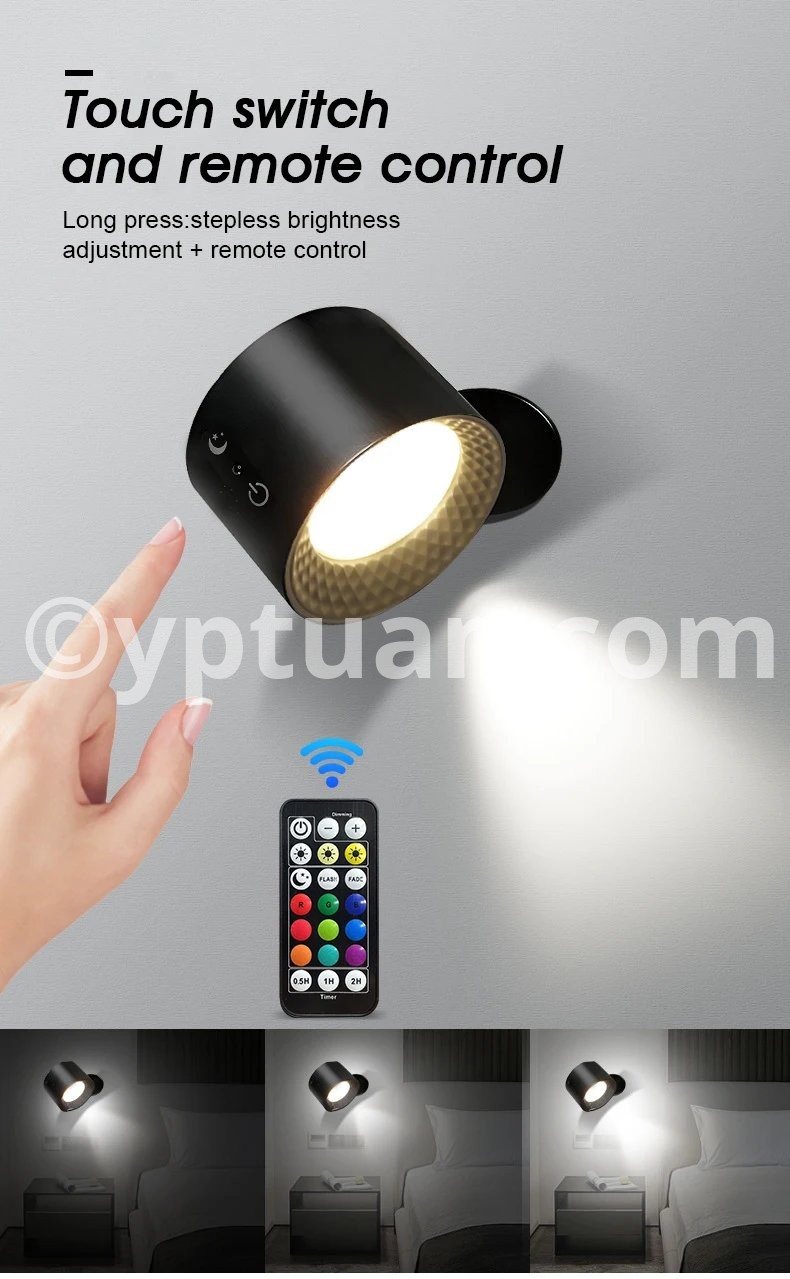 Led RGB Wall Lamp Touch Control 360 Rotatable USB Recharge Wireless Portable 5W IR Remote Modern Reading Light Bedside Bedroom