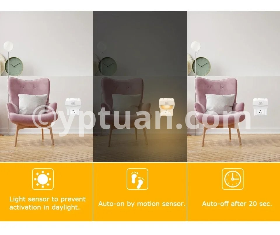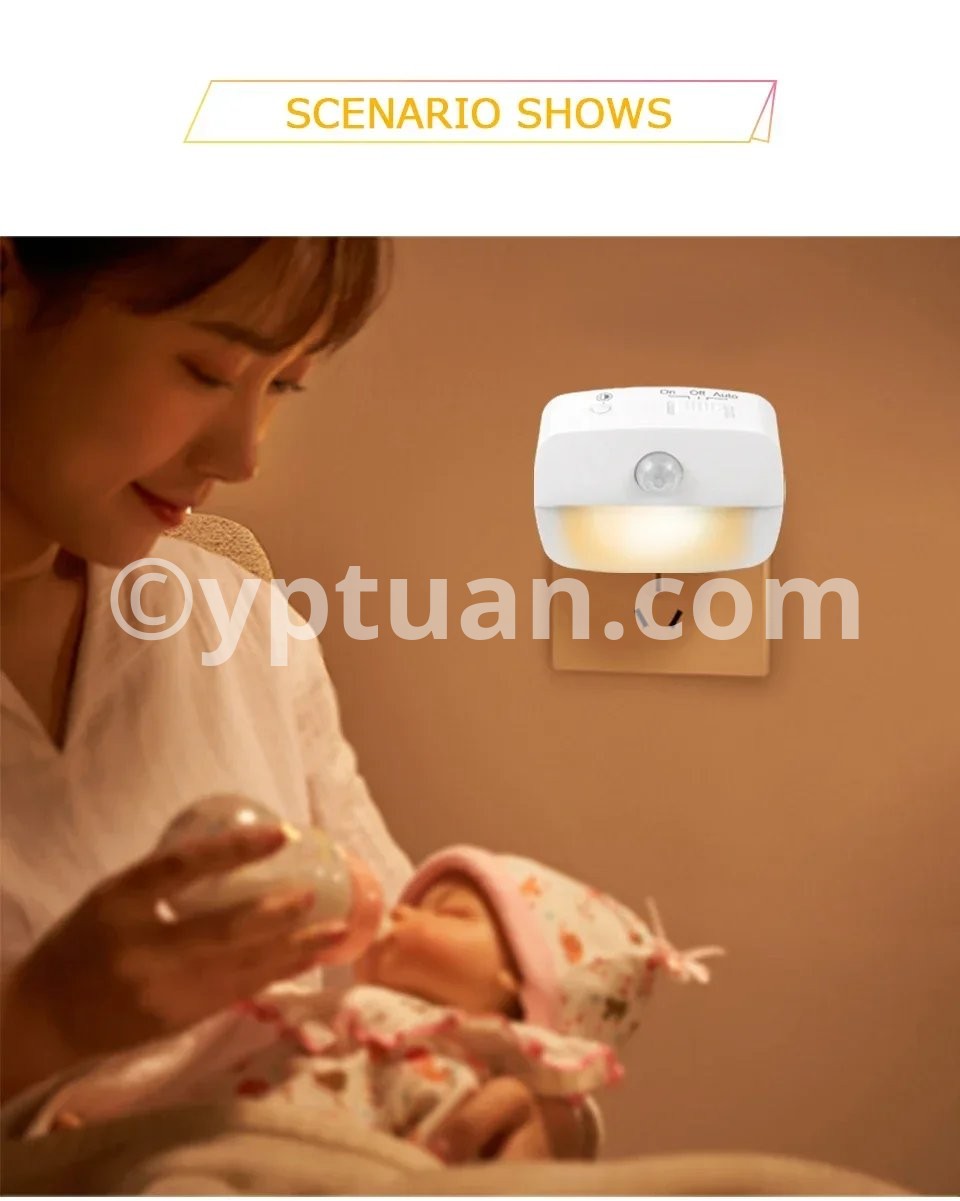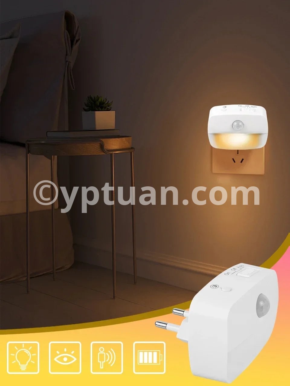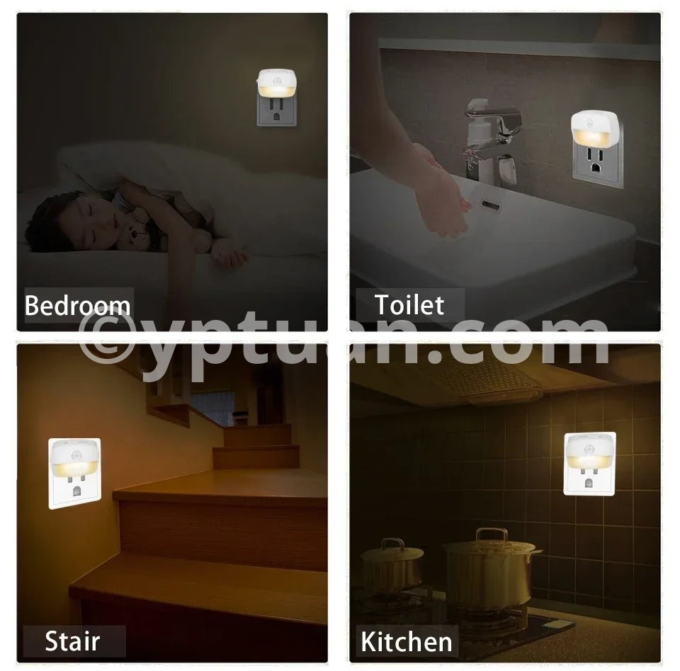 【Optical Design with Multi-Color Lighting】This night lights plug into wall comes in three colors:warm white (3000K),mixed light (5000K),and cool white (6500K).It has a stepless dimming range of 10-30lm,With its U-shaped emitting design and unique hidden lamp head design,the light brightness is more comfortable,It is also suitable for families with old people and children. 【Brightness Adjustable and Memory】Two brightness adjustment modes:short press (three light colors),long press (10-60lm stepless dimming).Memory function:both brightness and light colors have memory function,which can simultaneously achieve the last setting of night light brightness and light colors (the night light needs to be plugged into the wall to maintain connection in automatic mode),eliminating the trouble of adjusting brightness back and forth at night. 【Energy saving smart night lights】This motion sensor night light is sensitive and works in two modes.In the "on" mode:Steady on;In automatic sensing mode:When the motion sensor detects the movement of a human body or animal in the dark or low light, it will light up,detect the movement within a range of 3-5 meters and 120 degrees,and when no movement is detected,it will automatically turn off within 30 seconds to save energy.Maximum power consumption 0.6W,very energy saving. 【Safe and reliable】The materials used for this night light are made with flame retardant technology and come with overvoltage protection function,capable of adapting to AC100-240V voltage to ensure home safety. 【Compact and space saving】The night light has a simple and elegant appearance, providing sufficient brightness without occupying too much socket space.It is durable and long-lasting,helping to reduce household expenses.It is suitable for bedrooms,bathrooms,hallways,kitchens,etc.