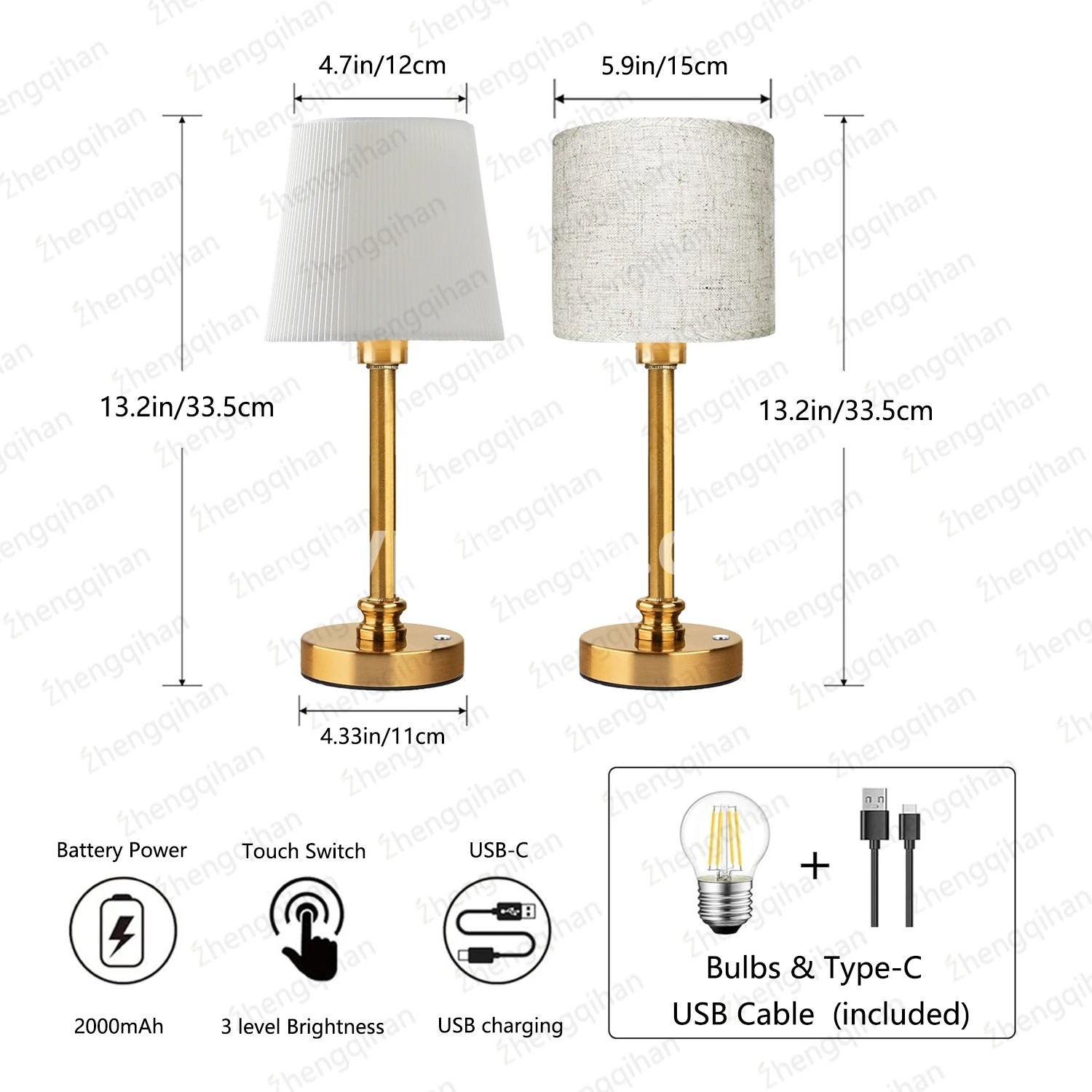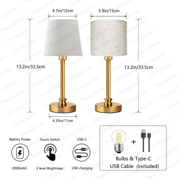 ⭐【The metal round】The total height of this wireless light is 33.5cm/13.2inch. Metal body and white fabric lampshade, more elegant and textured in soft light, suitable for living room, bedroom, dining room, coffee bar, balcony, porch, corridor.