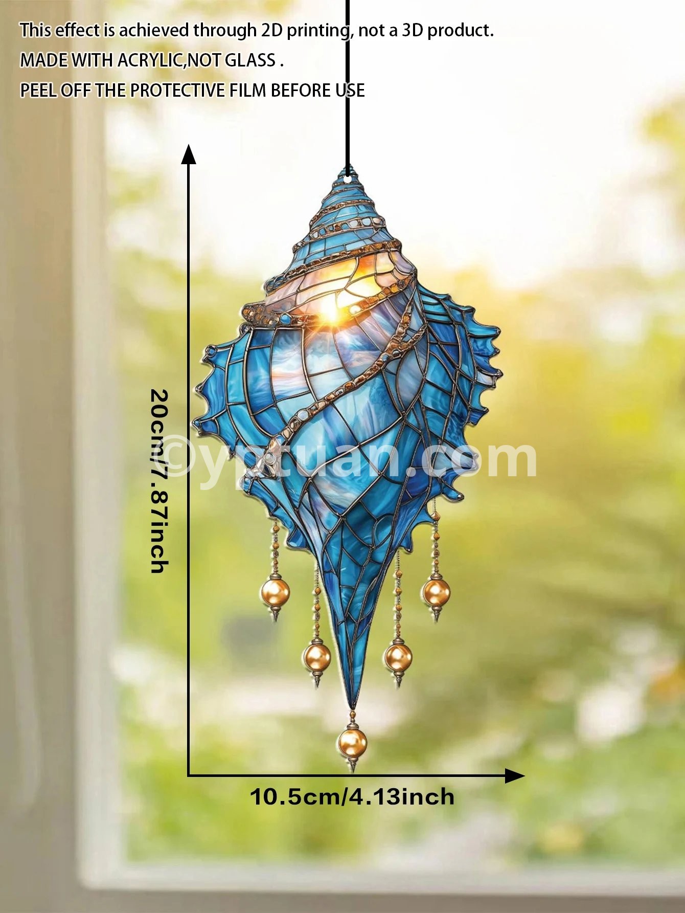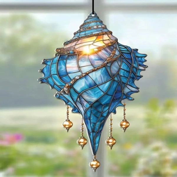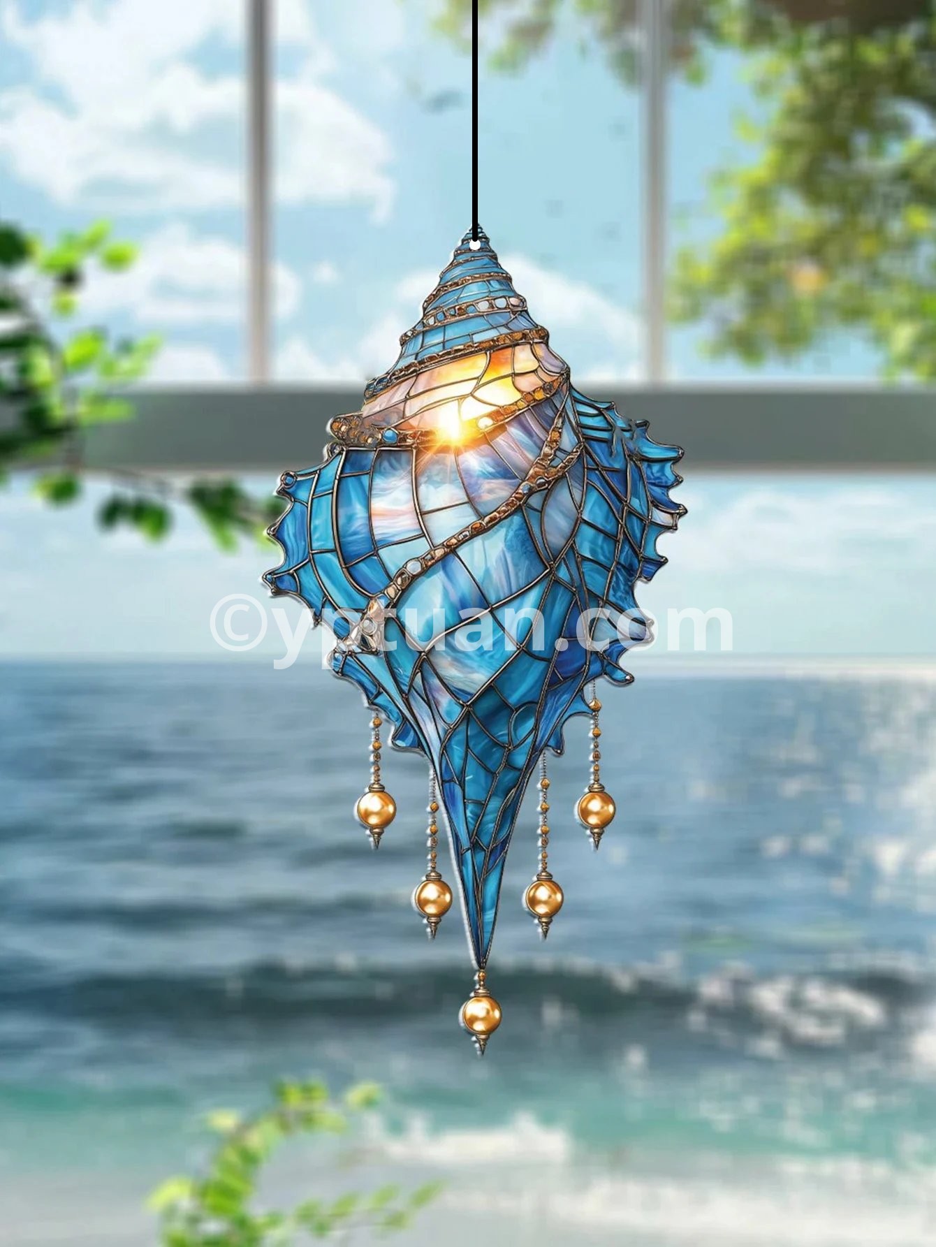 Blue Acrylic Conch Shell Suncatcher Hanging Ornaments Coastal Beach House Window Sun Catcher Garden Pendant Bedroom Decorations