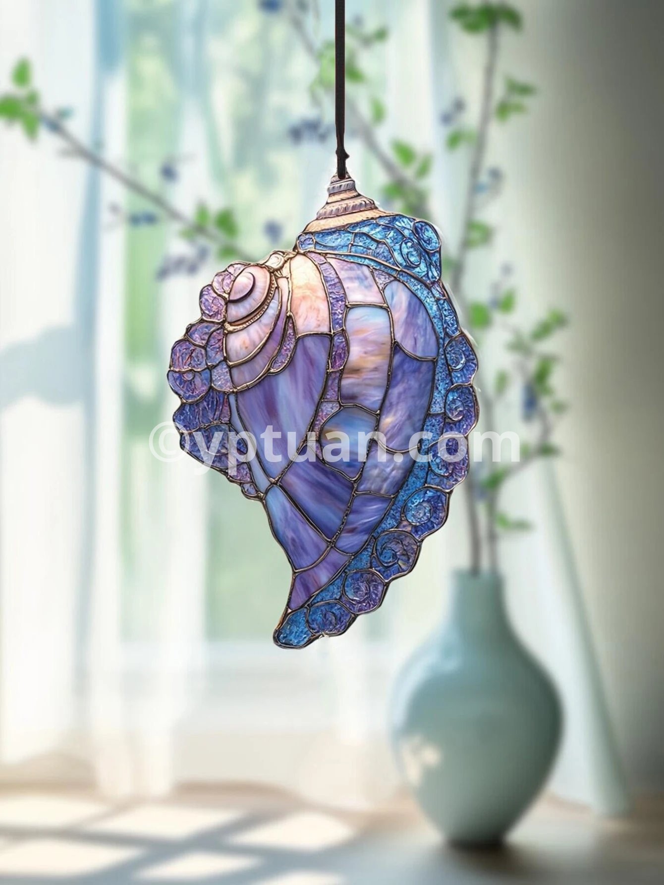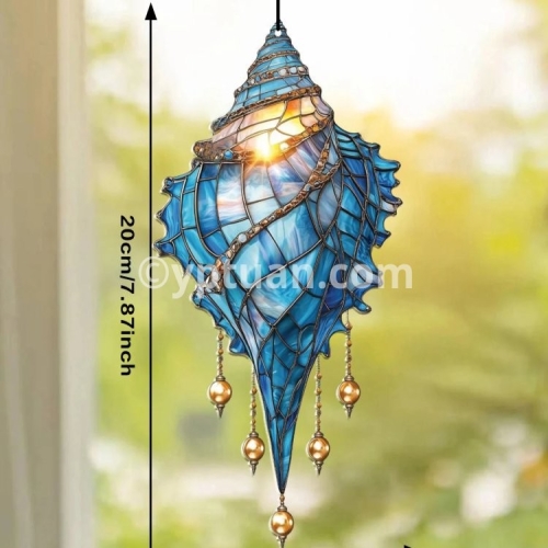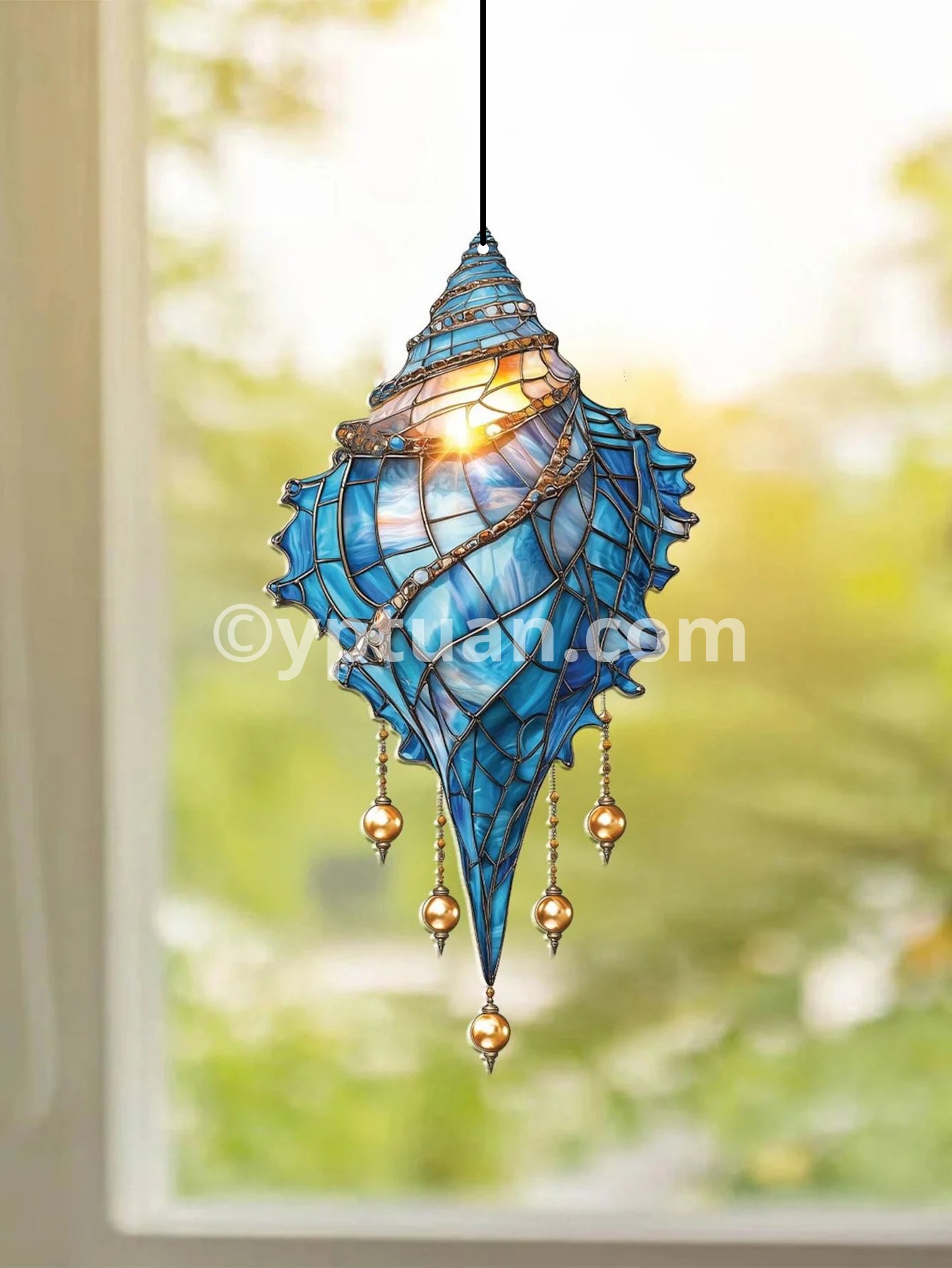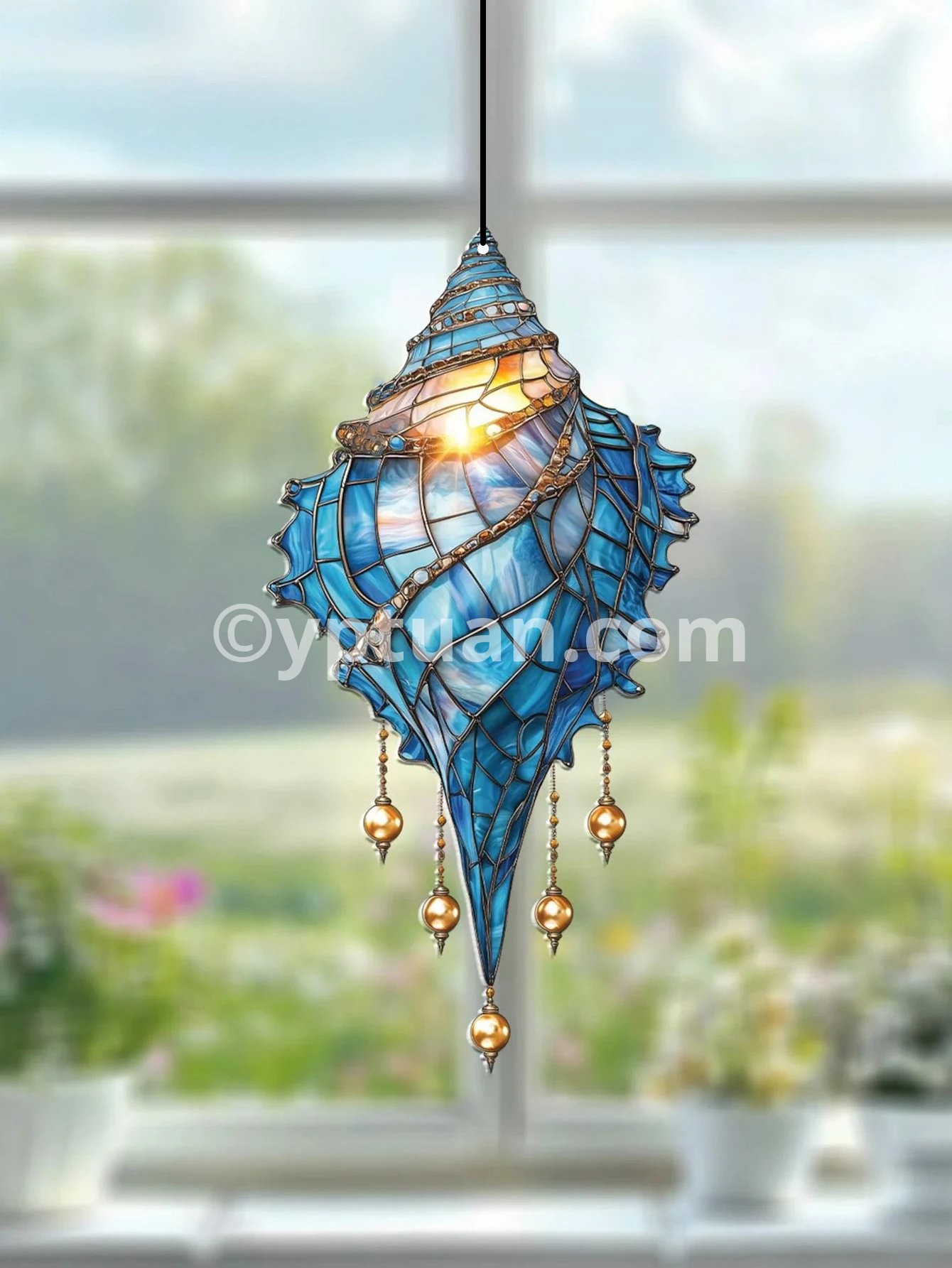 Blue Acrylic Conch Shell Suncatcher Hanging Ornaments Coastal Beach House Window Sun Catcher Garden Pendant Bedroom Decorations