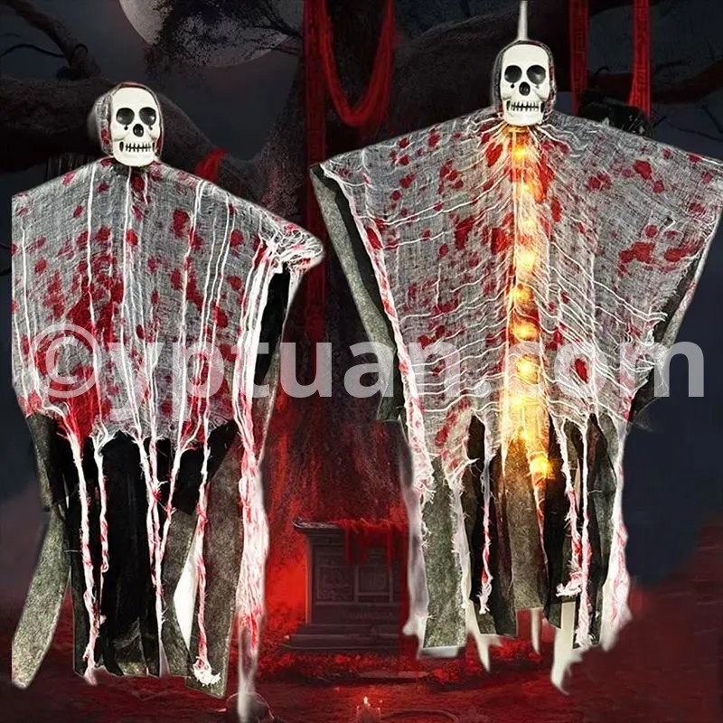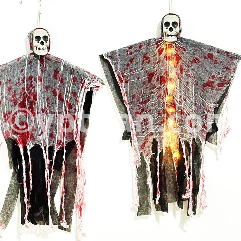 Halloween Decoration Stained with Blood Glowing Skull Hanging Ghost House External Hanging Ghost Decoration Haunted House Scene