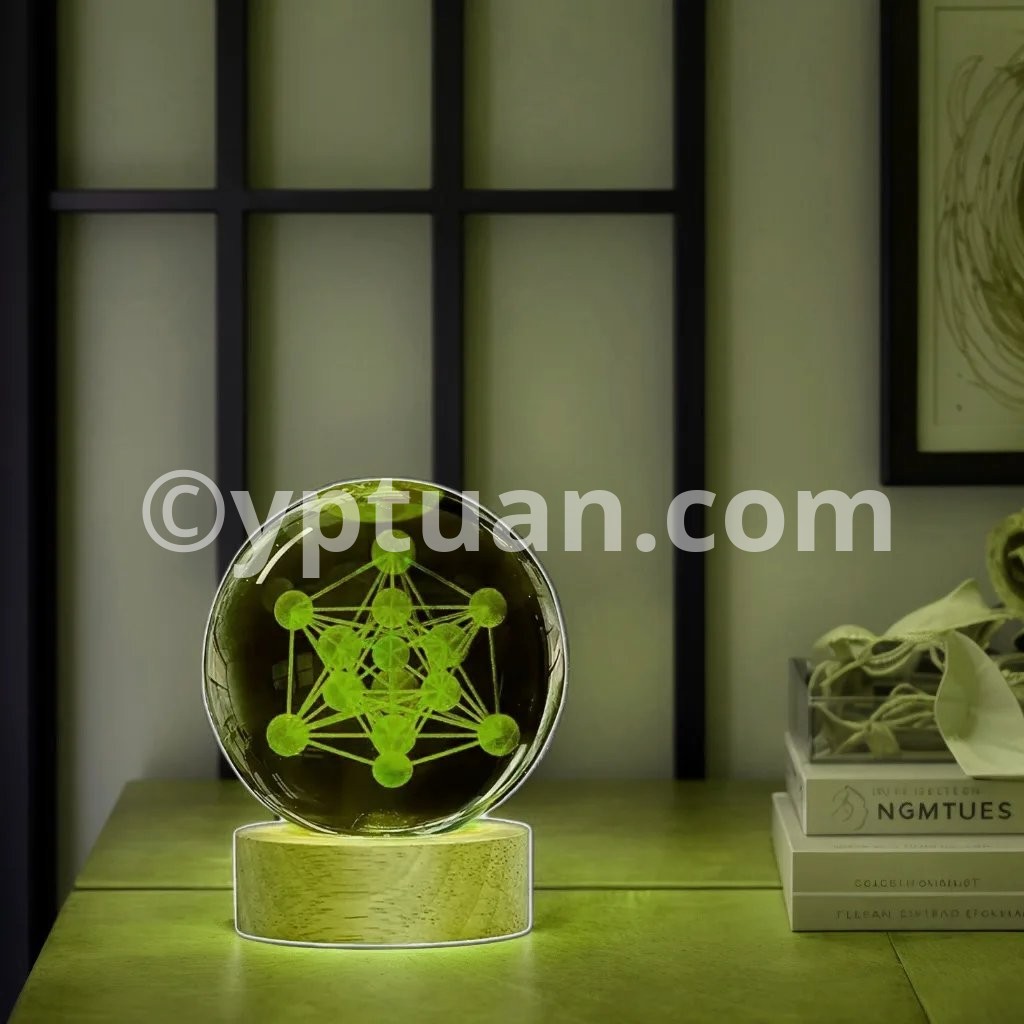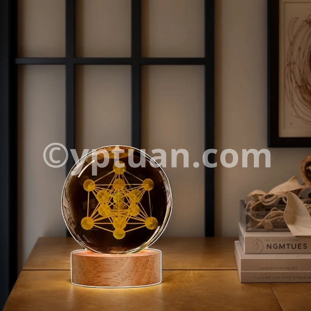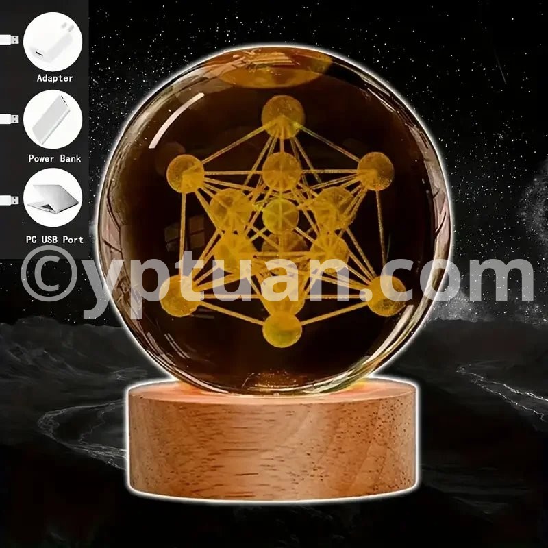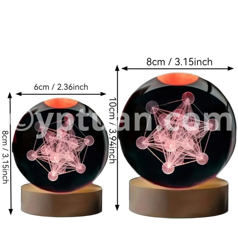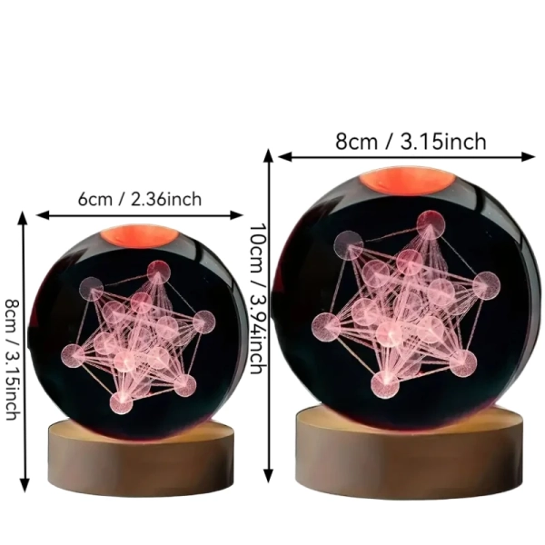 1pc 3D laser engraving Metatron, crystal ball night light, modern polished glass decoration, Christmas, Halloween, Thank