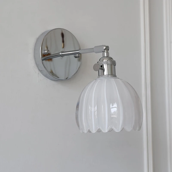 Stylish Design: The Iron Art Glass Flower Wall Lamp features a modern design with a glass lampshade and chrome-plated iron art, making it a statement piece in any setting.