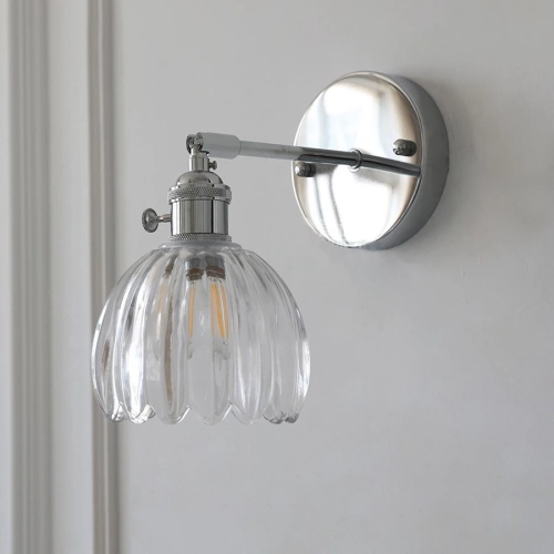 Chrome Stylish Iron Art Glass Flower Wall Sconce with Adjustable Arm and Switch for Home Deco Contemporary Interiors Wall Lights Fixtures