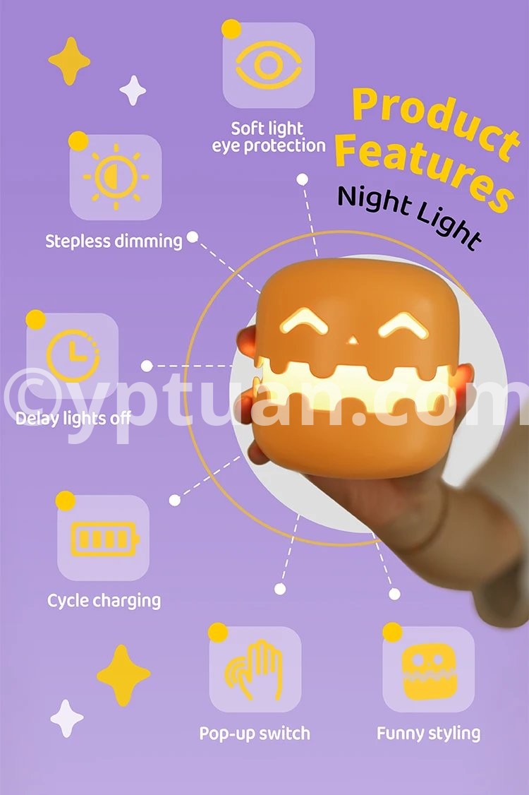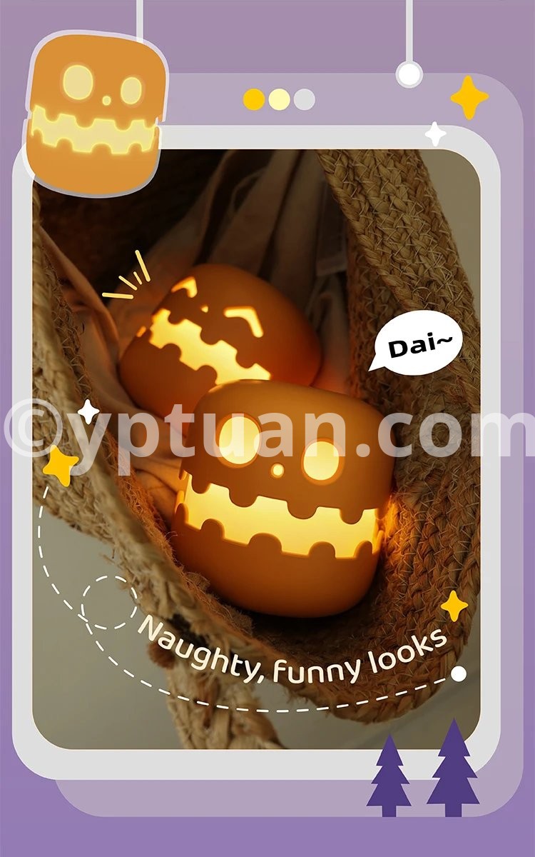Night Lights Cartoon Ghost Face Bedside Light Halloween Decor Cute Room Rechargeable Lamp For Kids Room Bedroom Decoration