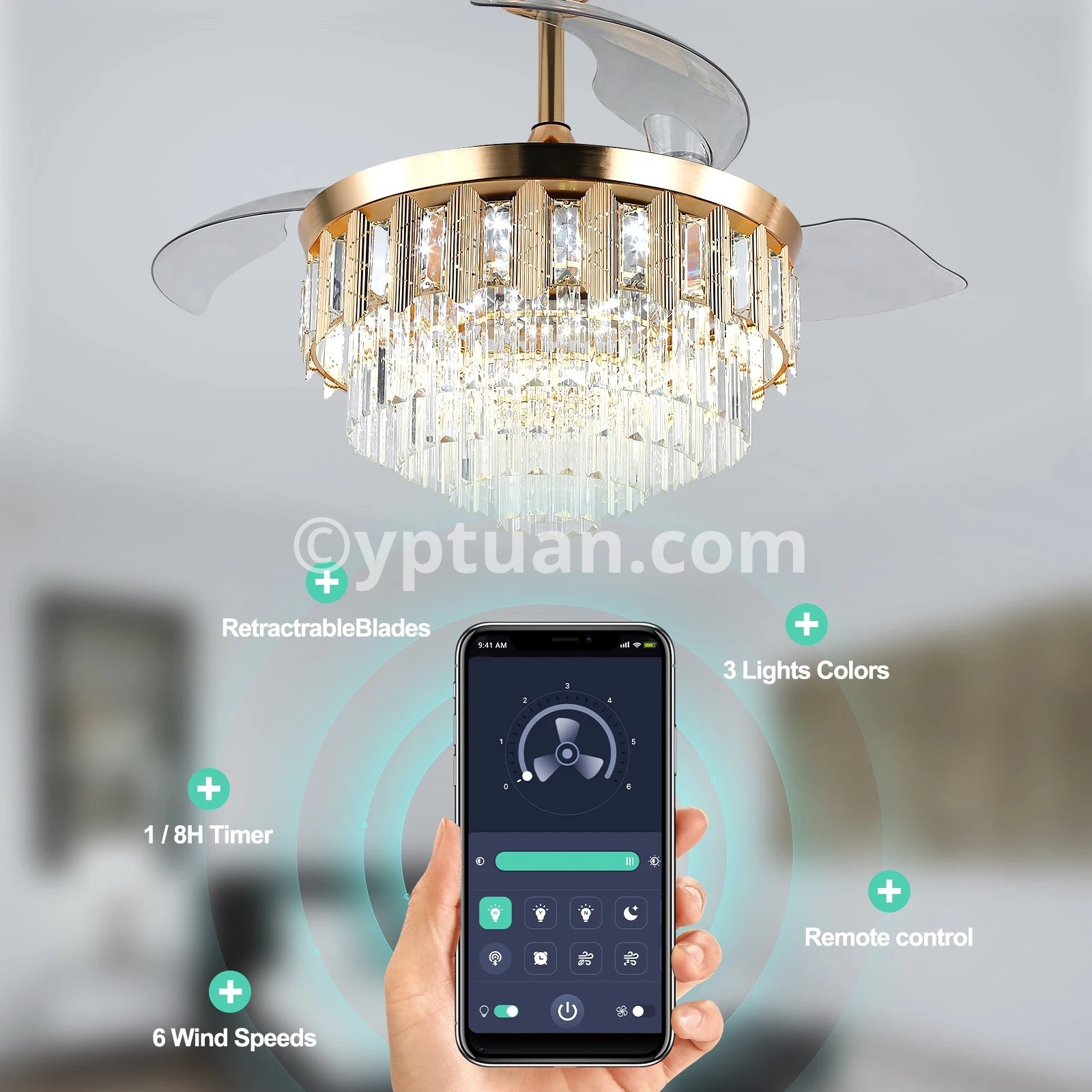 VETRULUS Modern Ceiling Fan With Led Light Smart APP Remote Contro Reversible BLDC Intelligent Fandelier Lamp Indoor Fixture