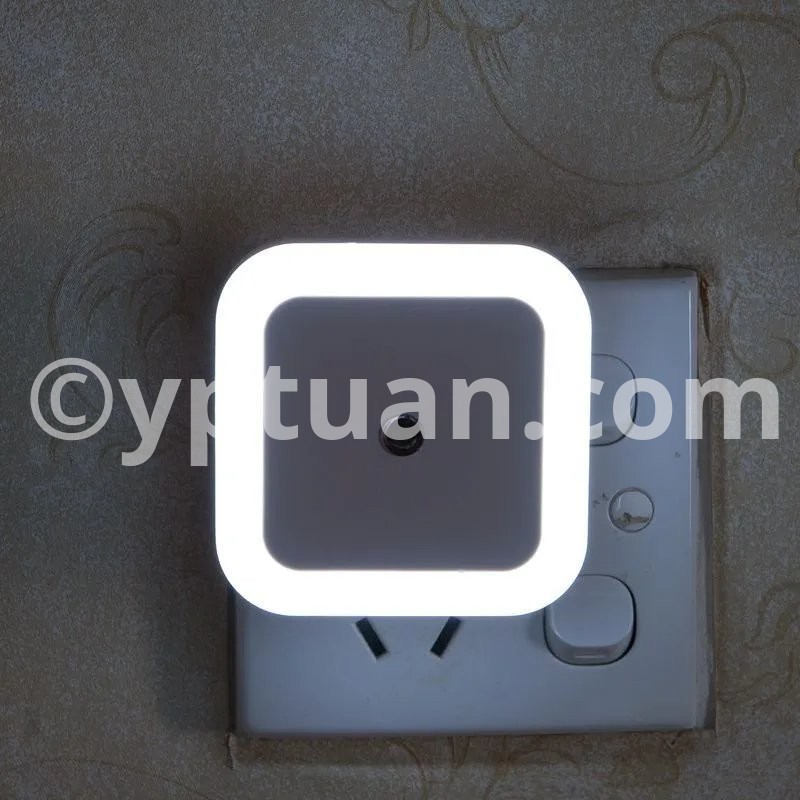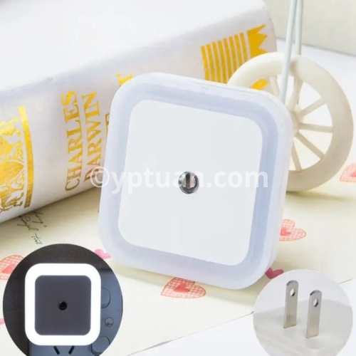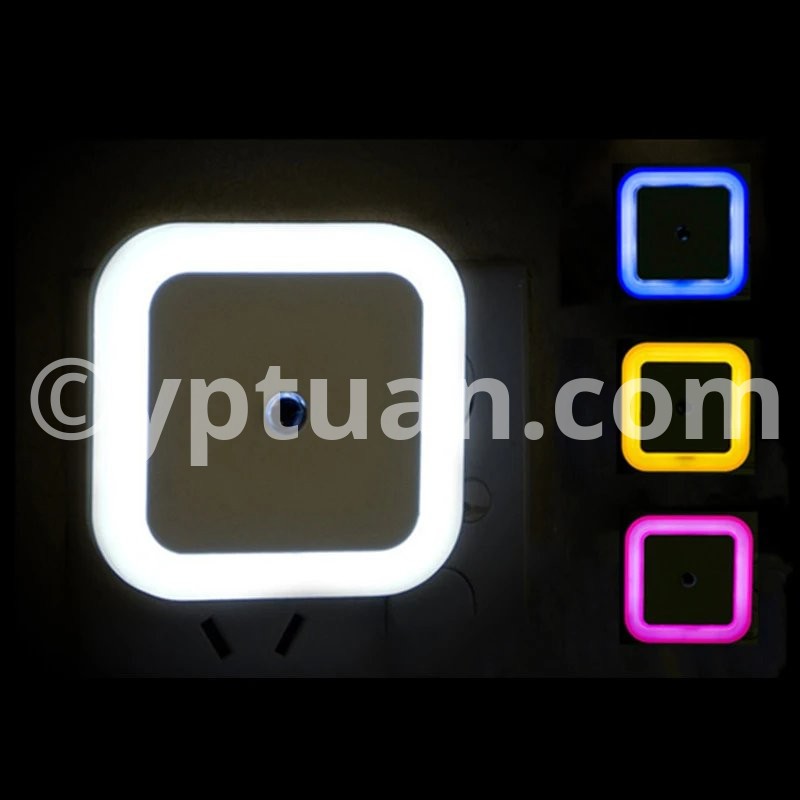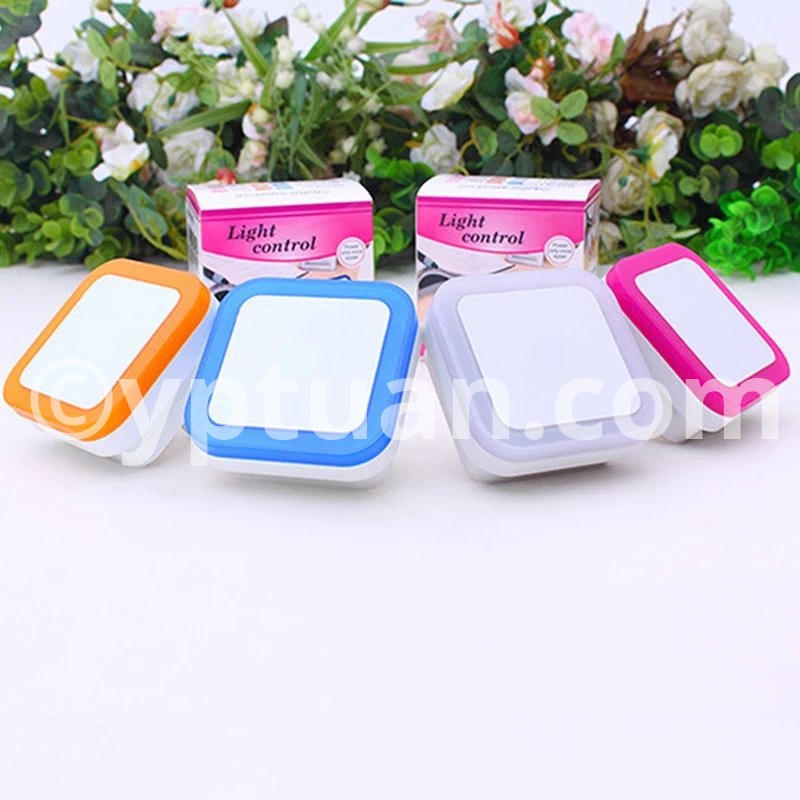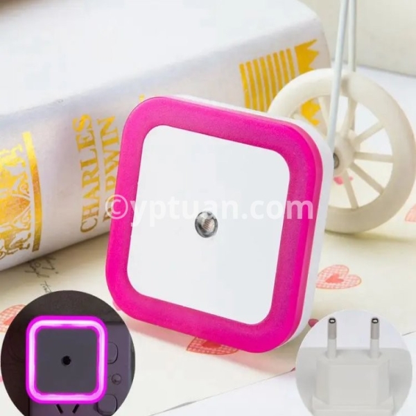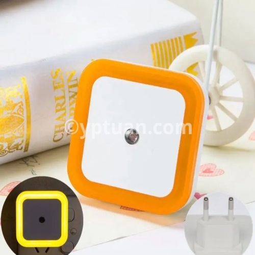 Name: Square LED Night Light Light color: white; Blue; Red; Yellow Power supply: European plug (220V); US Plug (110V) Power: 0.5W Glowing Range: The border emits light Luminous angle: 360°C Lifespan: 50000H Shade: Plastic Chip: 4 LED lamp beads Working mode: light control induction (plug in the power supply, automatically work in the dark environment; Does not work in a bright environment) Package: 1 x LED night light Note: It is a light control sensor night light, not a human motion sensor; Plug it in and it will work automatically in dark environments, but it won't work in bright environments
