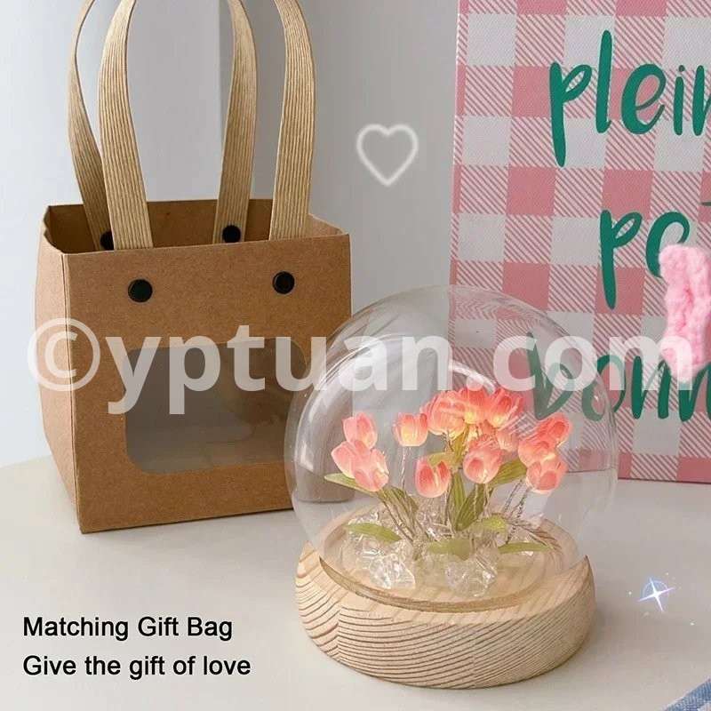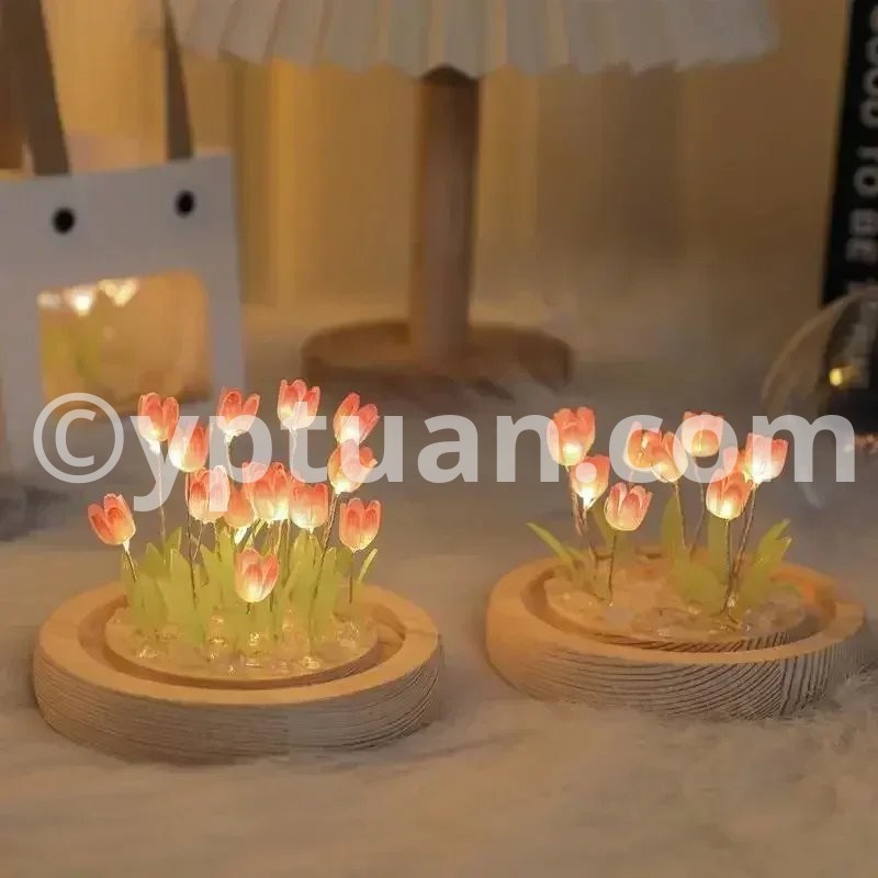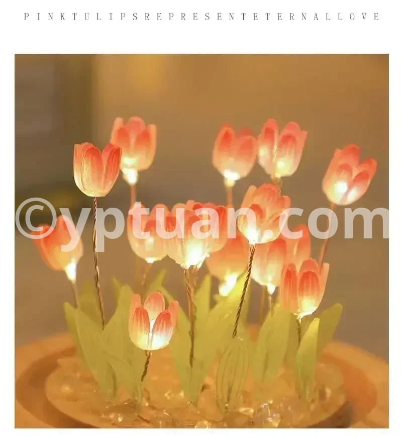 LED Night Light Ornaments Handmade DIY Bedside Artificial Tulip Flower Night Lamp Bedroom Desk Decor Birthday Gifts Table Lamp