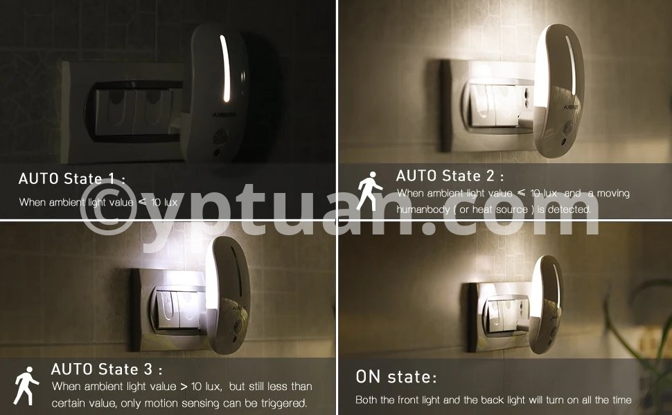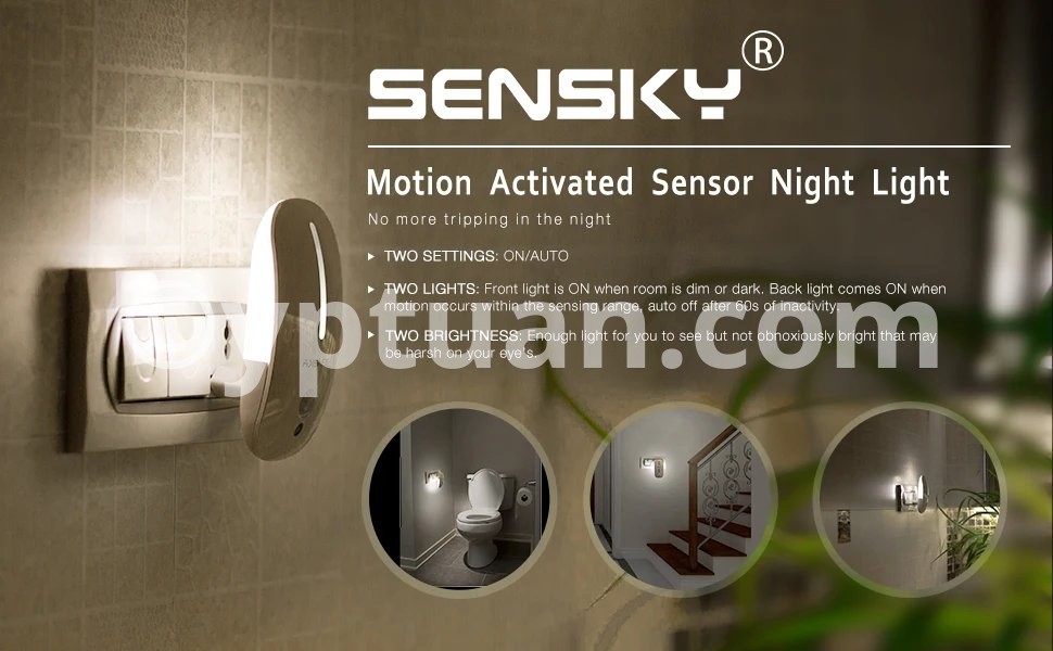 SENSKY LED Night Light Motion Sensor Wireless Plug In US 110V EU UK 220V