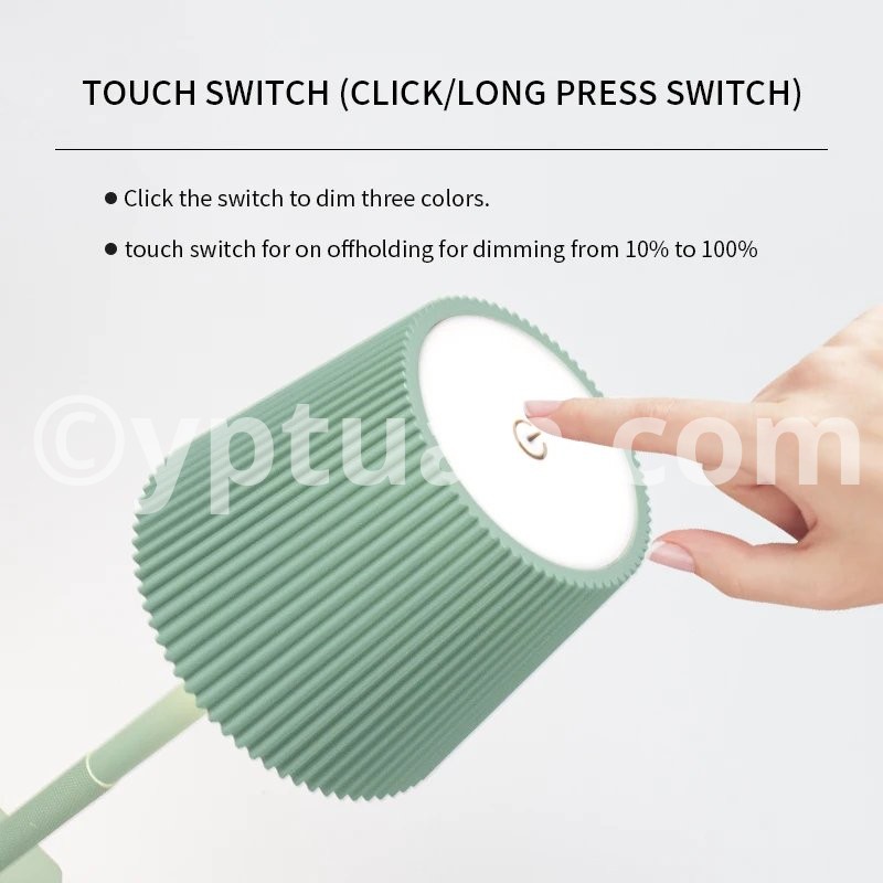 Name: LED touch desk lamp Material: Iron and ABS Style: plug-in, Lamp beads: LED eye protection lamp beads Brightness: touch three-speed dimming Plug-in model: USB power supply is required without lithium battery. Included:1*LED desk lamp