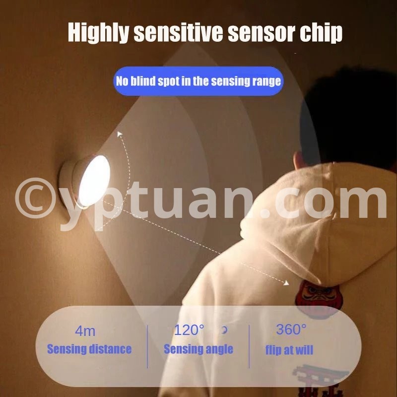 1 x 360° Rotary Motion Sensor LED Night Light 1 x USB Charging Cable 1 x Double-sided Adhesive Pads 1 x User Manual