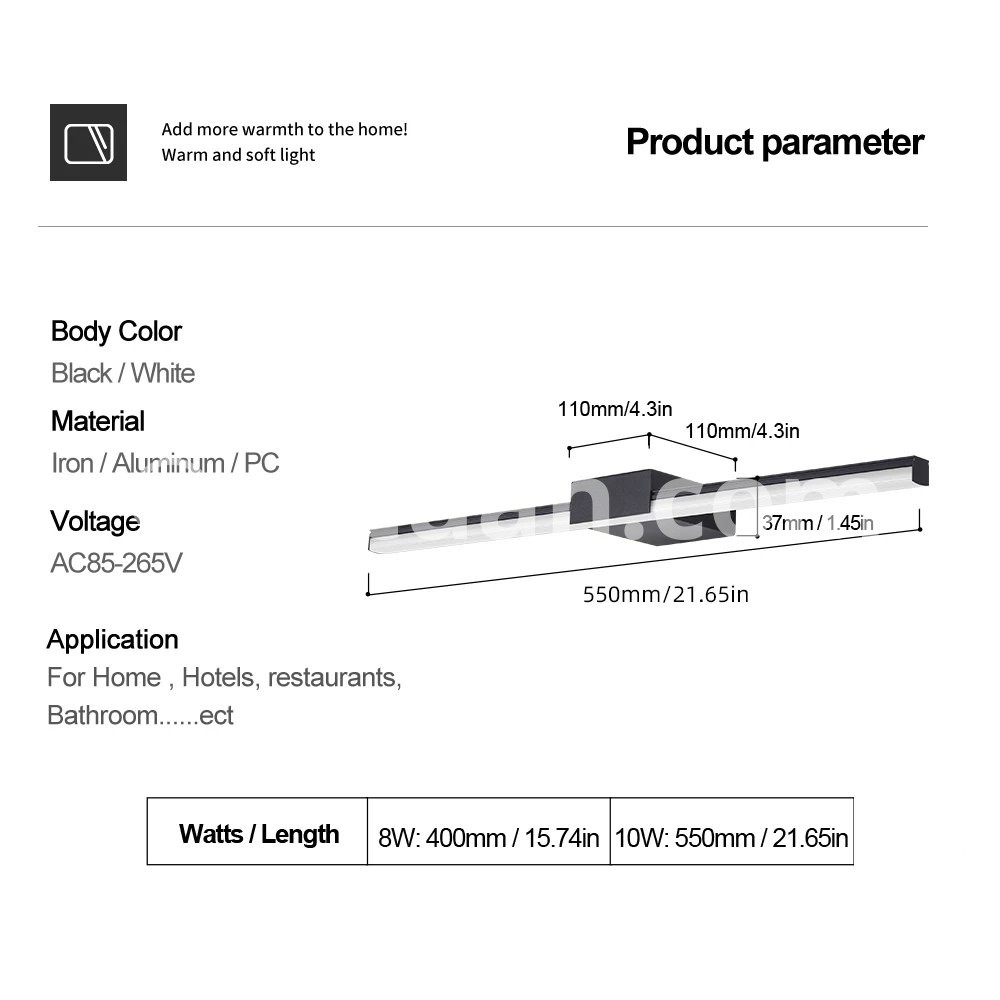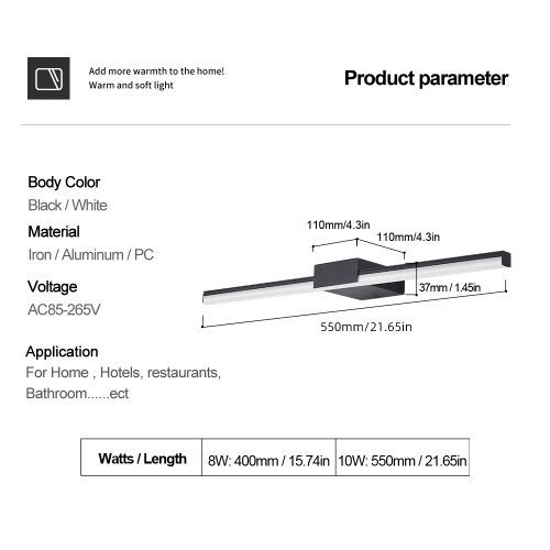 Led Wall Lamp Bathroom Vanity Light 40cm 55cm AC85 - 265V Indoor Modern Wall Sconces Mirror Wall Light Fixtures Black White