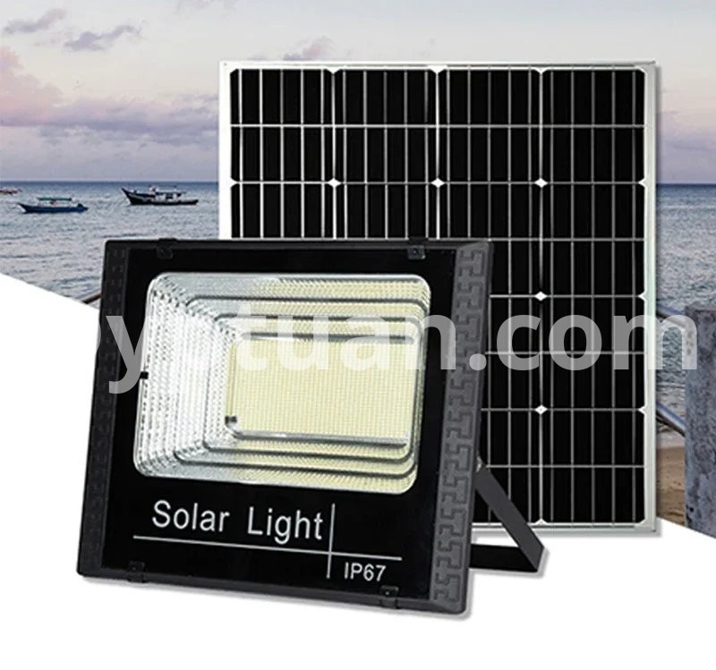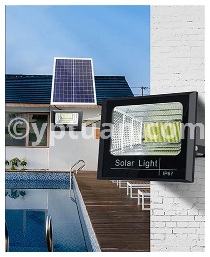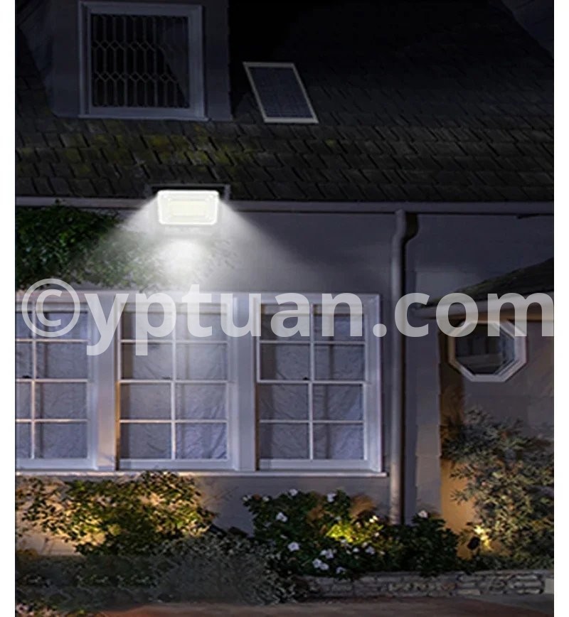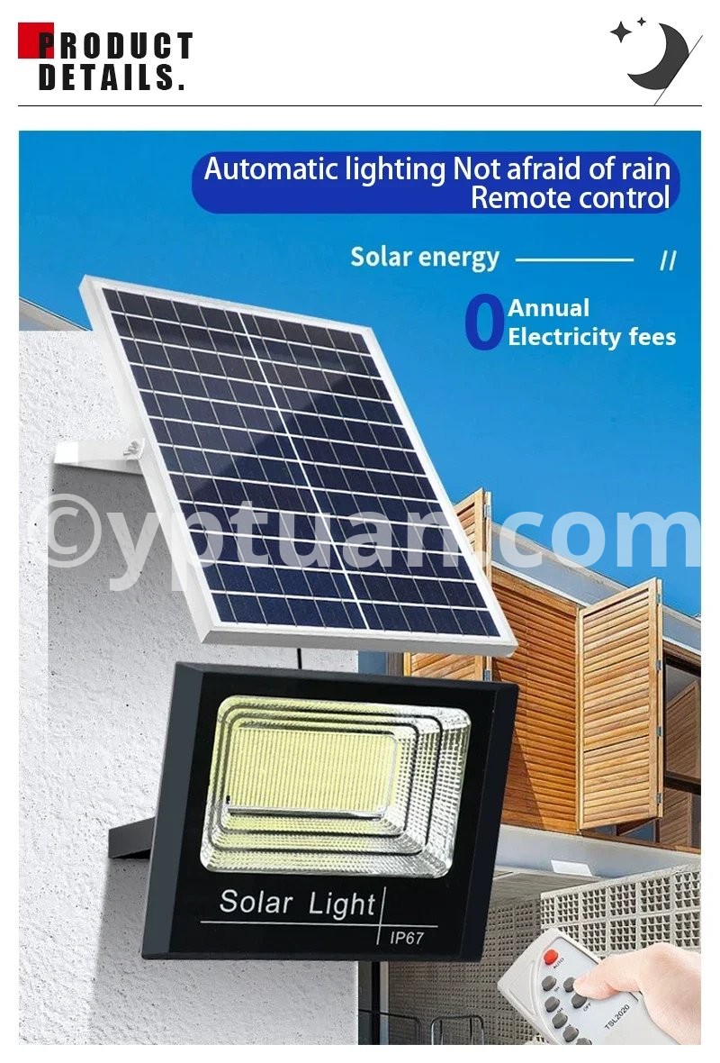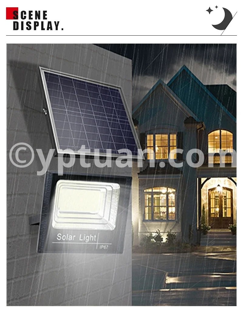 Lamp body material: ABS plastic Working mode: lighting control+time control+remote control Power/Size: 50W/L13.1cm * W13.1cm 100W/L16cm*W12.5cm 200W/L20.9cm*W16cm 300W/L25.1cm*W20.2cm 500W/L27.4cm*W22.5cm Number of LEDbeads: 50/102/170/250/362 LEDs Battery type: Lithium iron phosphate battery Solar panel category: Polycrystalline silicon Light source type: 2835 SMT