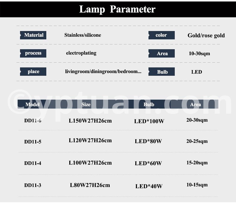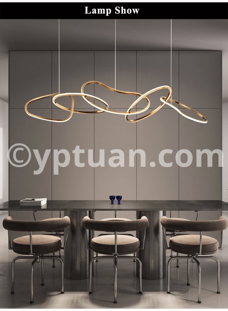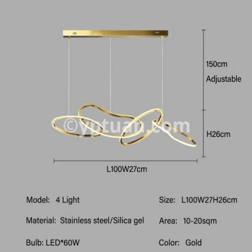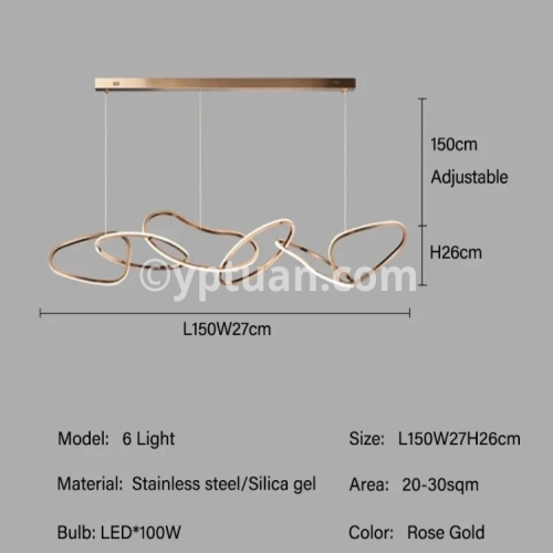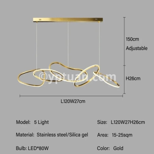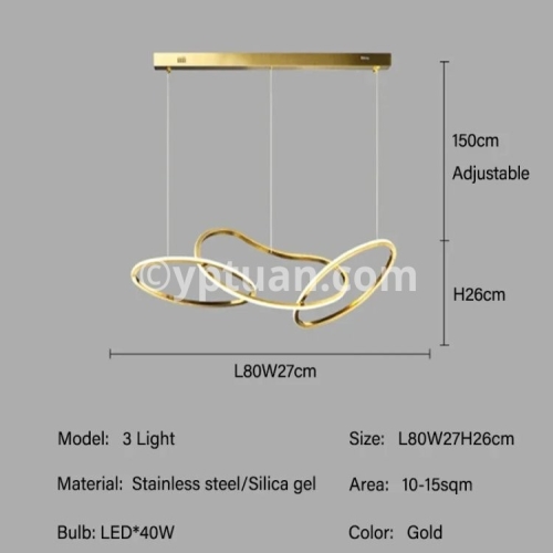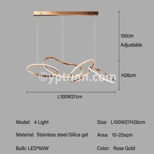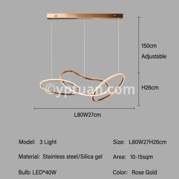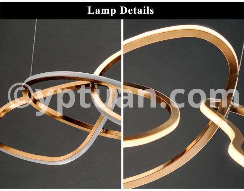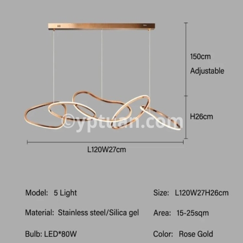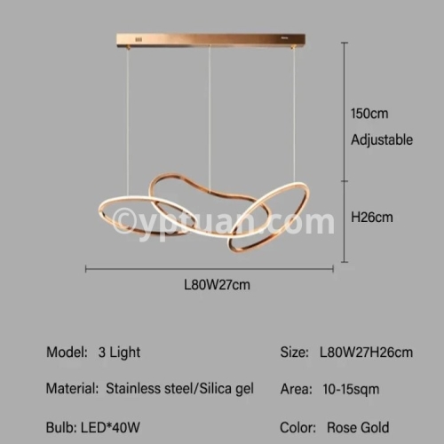 Product description: Name:Modern Rose Gold Circle LED Chandeliers Ligthing Lustre Home DiningRoom Decor Chandelier Lamp Indoor Bar Hanging Lights Fixtures; Model no: DD11; Material: stainless steel; Bulb base: LED bulb; Art: spin, weld, paint, burnish; Application: living room, bedroom, restaurant, coffee house, bar; Size: 3 light L80cm h27cm; 4 light L100cm h27cm 5 light L120cm h27cm;6 light L150cm h27cm Weight:4-8kg;Weight:4-8kg;