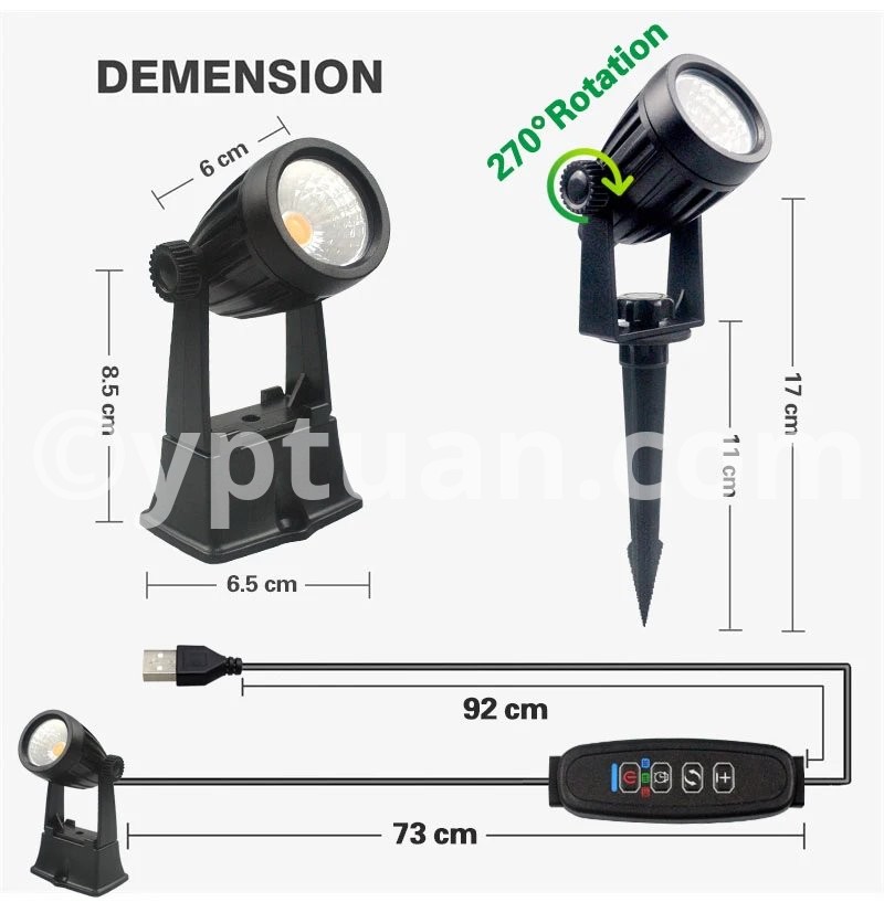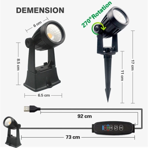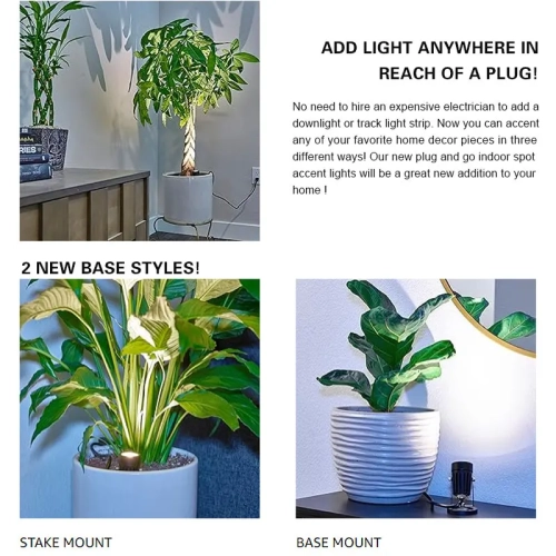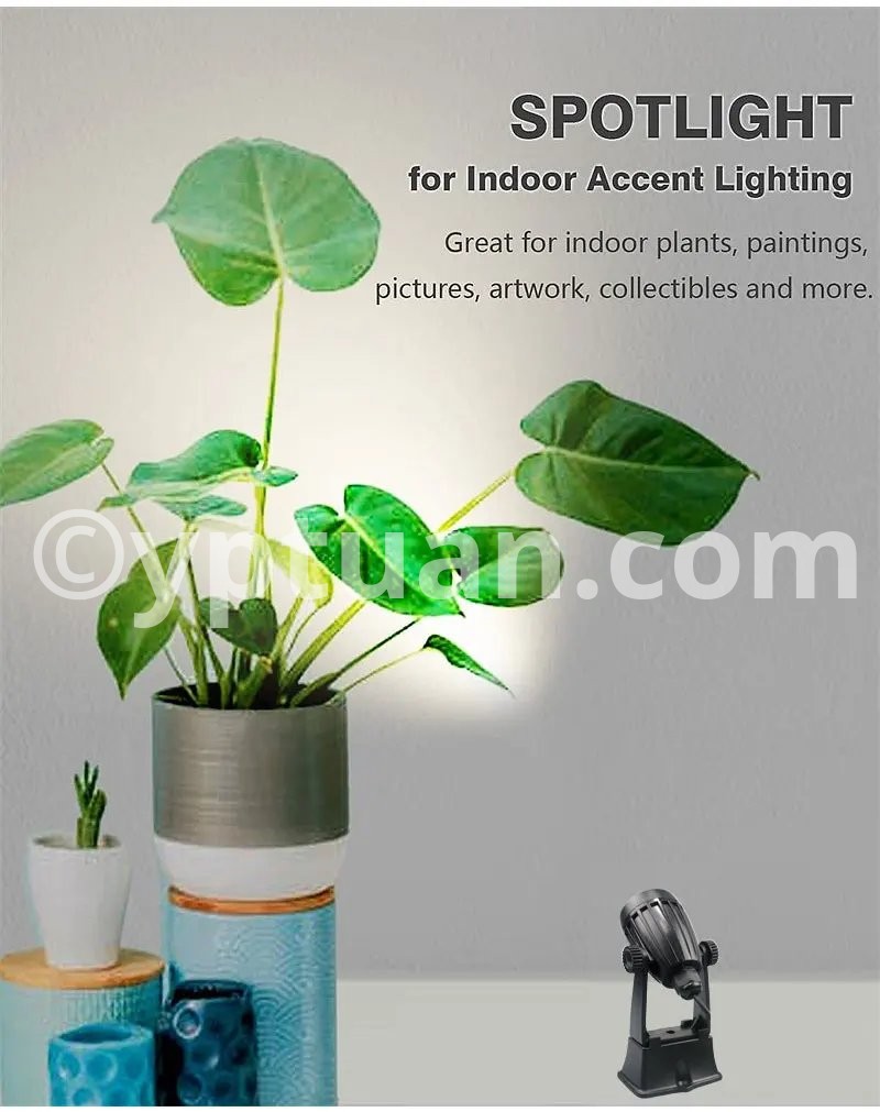 Description 1.Ideal for Accent Lighting: With60° beam angle and 270° rotatable head, these indoor spot lights are ideal for accent lighting. They are designed to create a mood and add interest to a room, for example, by highlighting various objects and areas in the room such as plants, artworks or other architectural features. 2.Dimmable LED Spot Light: Thesespotlights are dimmable, you can use the remote control featured on cord to adjust the brightness (stepless) and color (warm white 2700K / nature white 4000K / day white 6000K), which can meet the demands of the changing requirement of you in different environments. 3.Easy to Install & Use: This accent lighting is no need to get an electrician to install. Just plug in and turn on, you can accent your home in 3 different ways, mounted on the wall or ceiling with screws, inserted into the ground with stake or put it directly on the table or floor. 4.Premium Quality & High Performance: Our indoor uplighting has an aluminum shell with good heat dissipation, which is more durable and safer than plastic shell. With the gridded glass lens, this spotlight will give out a soft light and create a warm atmosphere. The light source uses high quality COB LED chips, which is more energy saving and the lifespan up to 50,000 hours.