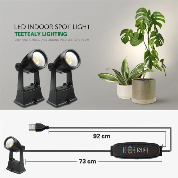 USB LED Spot Light Indoor Plant Lighting 5V Dimmable Uplight Spotlight Lamp for Potted Home Living Room 5W Decorative Lamp