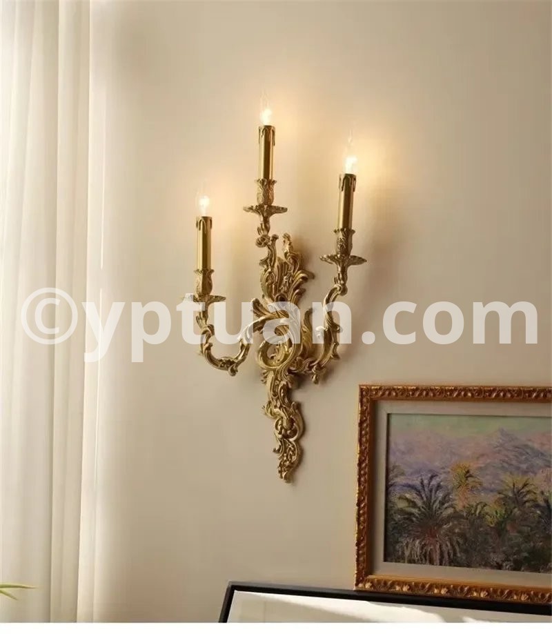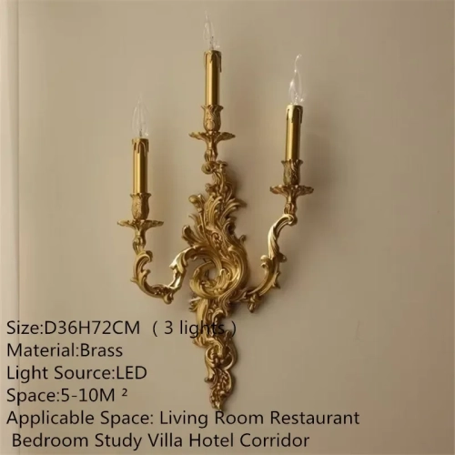 WPD French Luxury Brass Wall Lamp American Retro Living Room Bedroom Bedside Lamp Villa Hotel Study Aisle Corridor Light