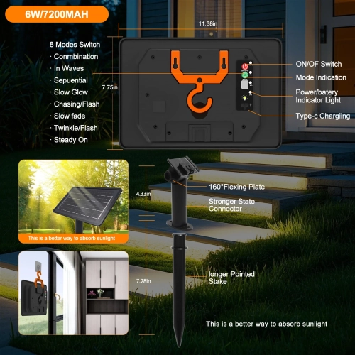 Solar Pathway LED Garden Festival Lights Outdoor Energy-Efficient Semi Flush Mount Lamps for Walkway Driveway Landscape Camping