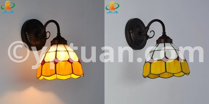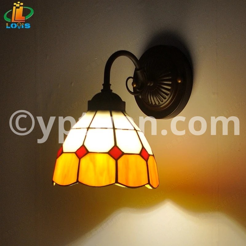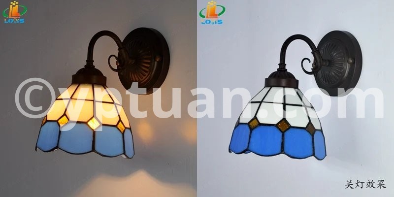 Material: Shade by the color fusion art glass mosaic welded together, all handmade antique wrought iron brown metal fixtures.