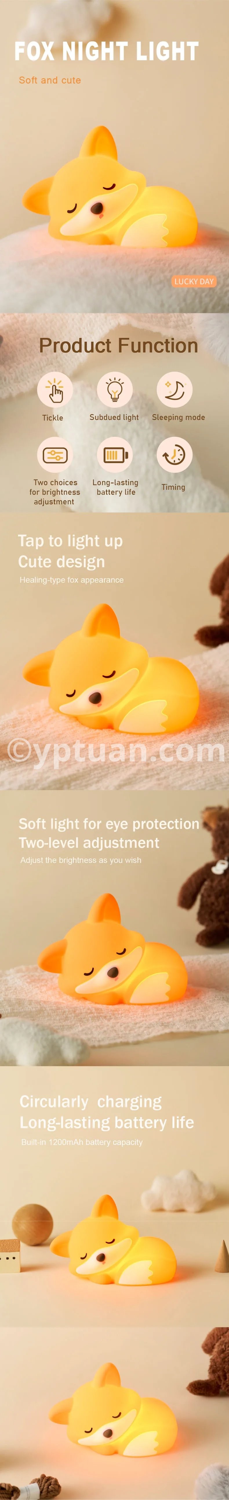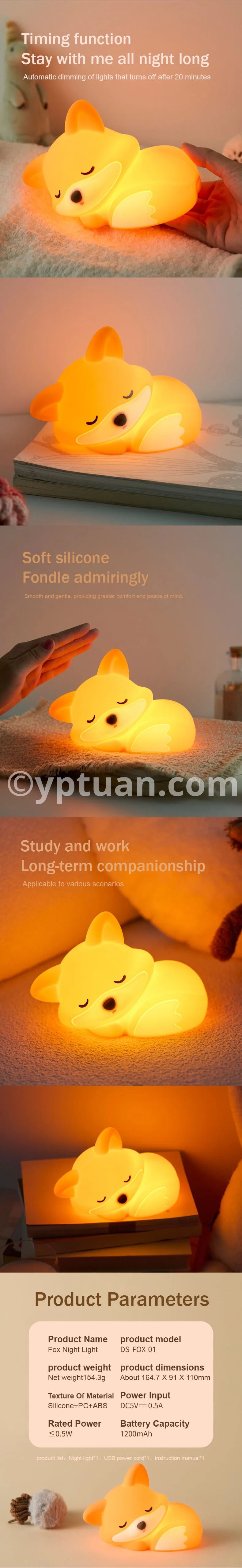 Fox Night Light,silicone lamp,USB charging,Artistic decorative items,birthday gift for friend,Travel,emergency light,timing