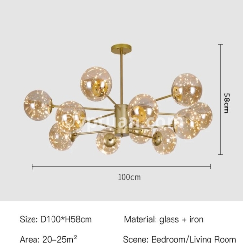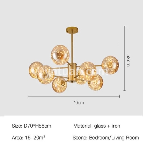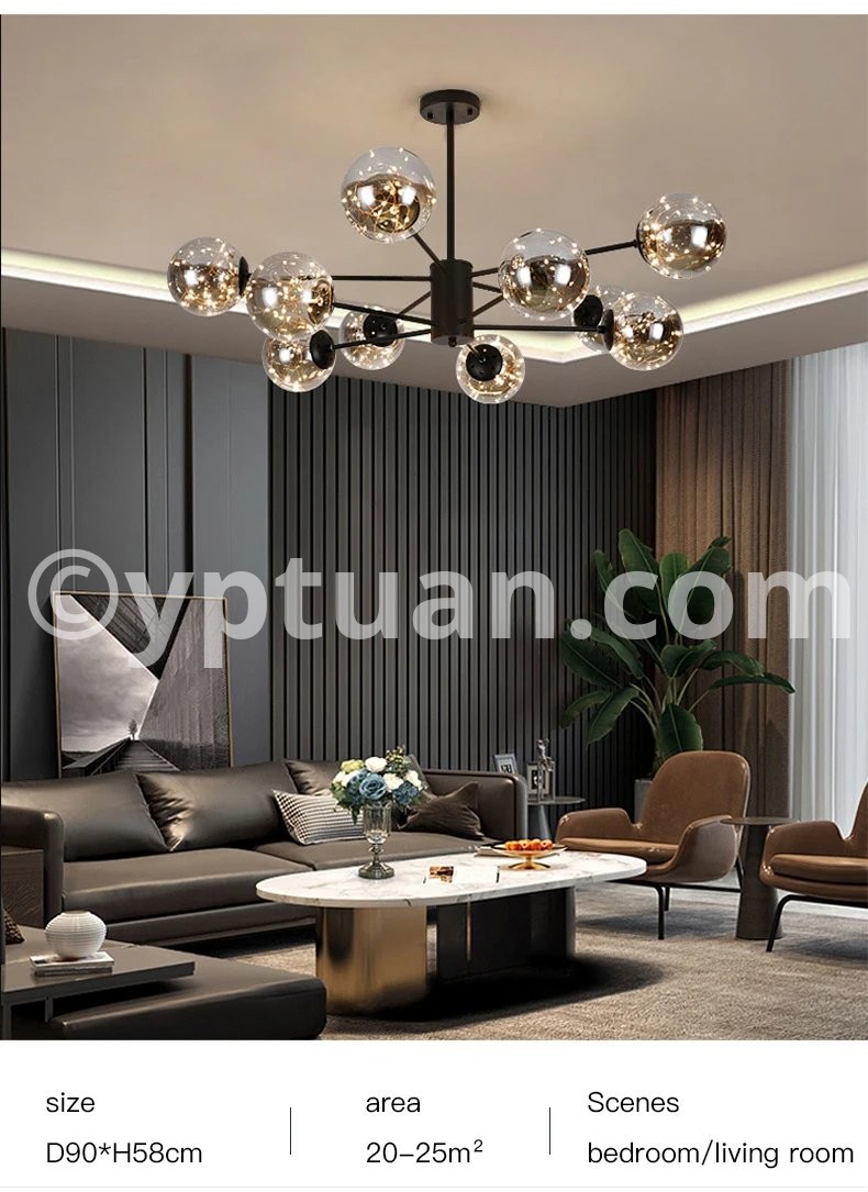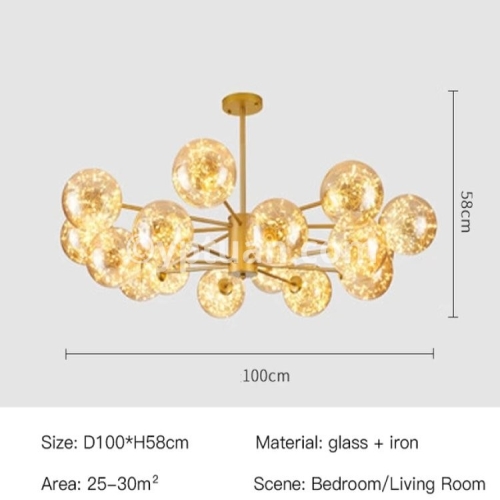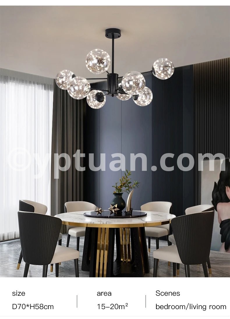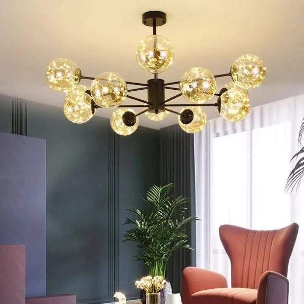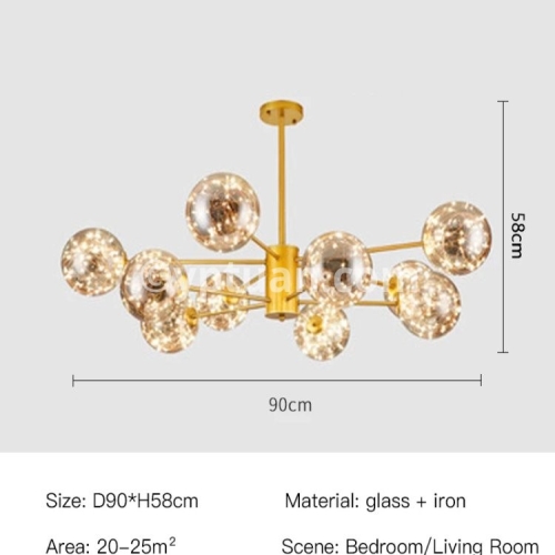 Modern Living Room Glass Ball Chandelier, Ceiling, Dining Room Led Light, Room Decoration, Indoor Lighting, Hanging Chandelier