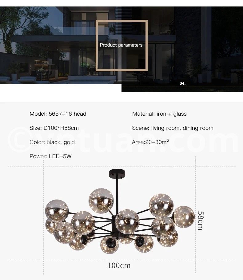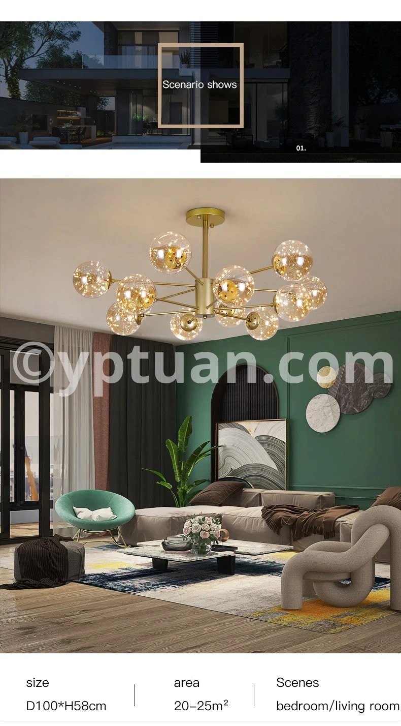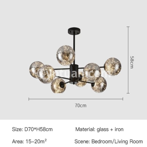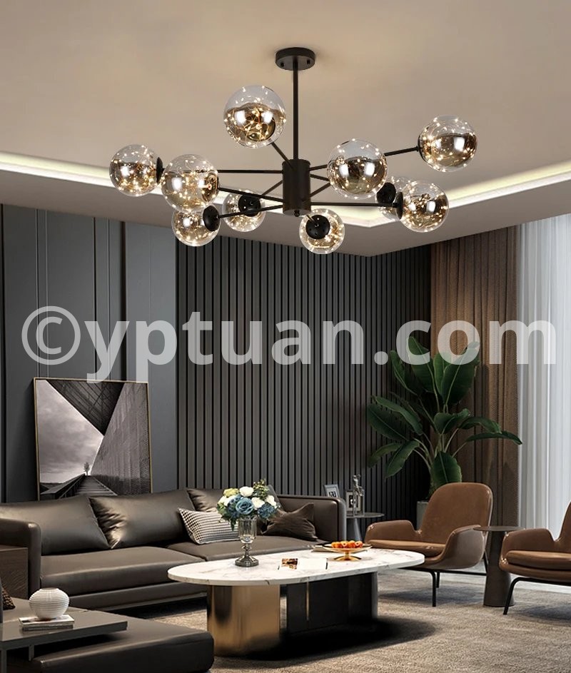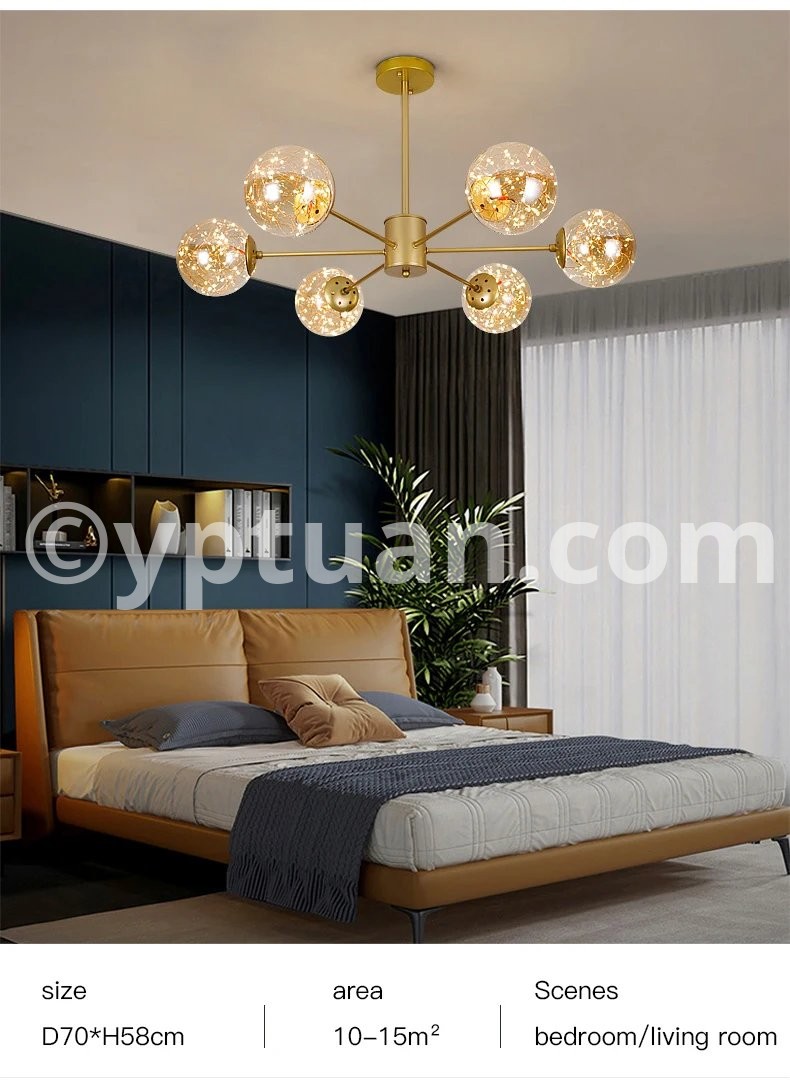Modern Living Room Glass Ball Chandelier, Ceiling, Dining Room Led Light, Room Decoration, Indoor Lighting, Hanging Chandelier