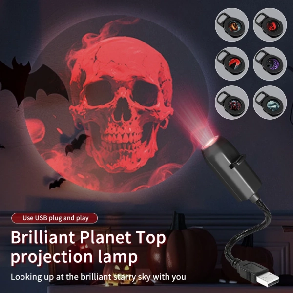 5V USB Plug in Projection Lamp Planet/Halloween/Christmas Theme Replacement Lamp Strip Indoor Ceiling Decoration Projection Lamp