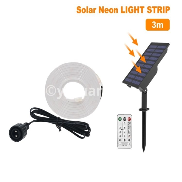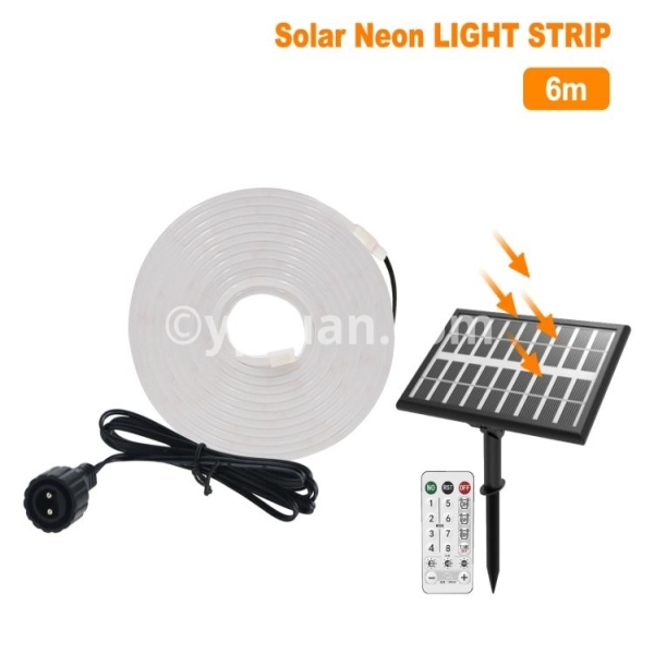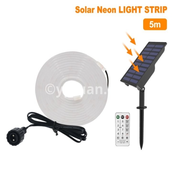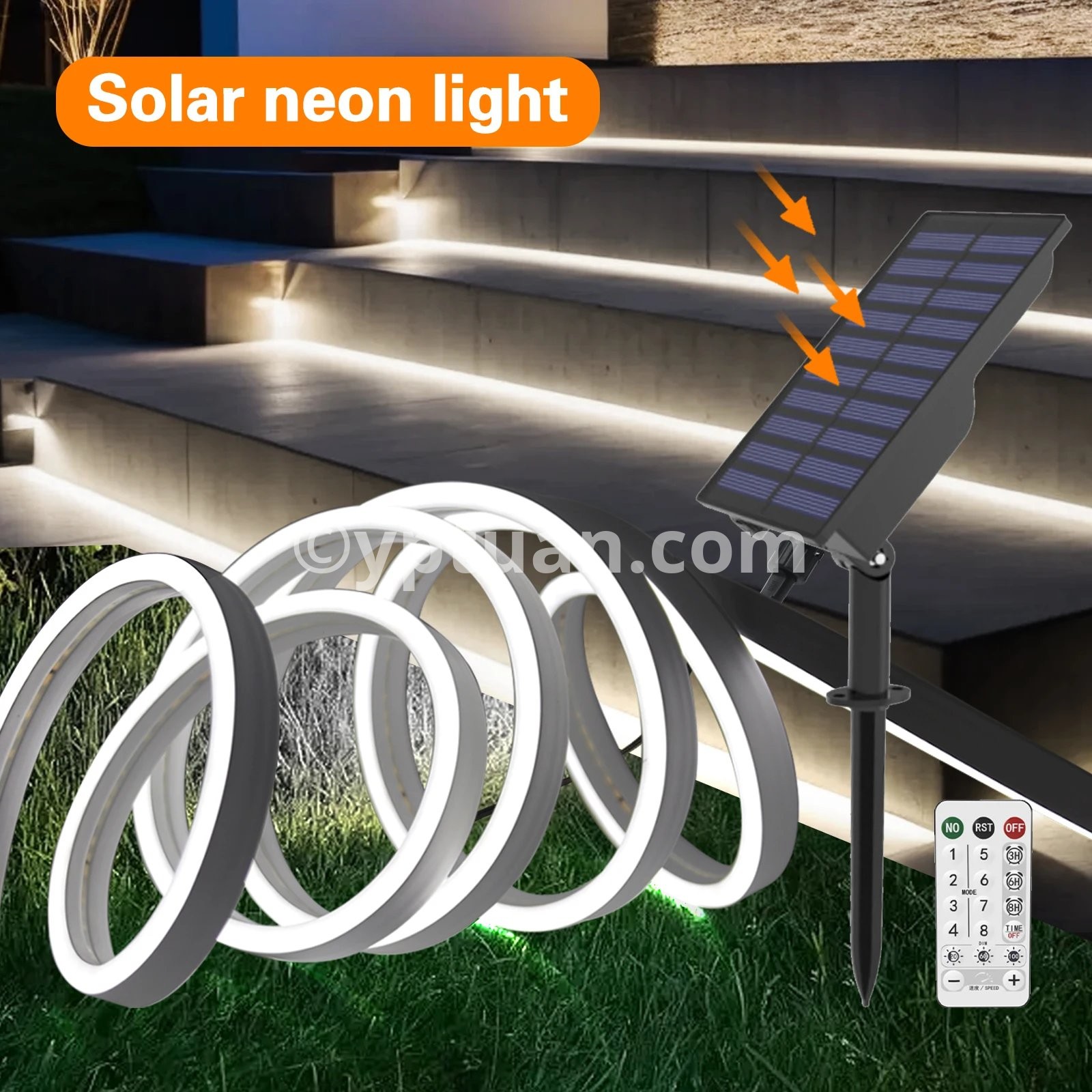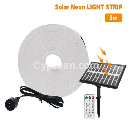 24V Solar COB Neon Light Strips Waterproof 2835 120LEDs/M 8 Modes On/Off with Remote Control Flex LED Strip Home Garden Decor