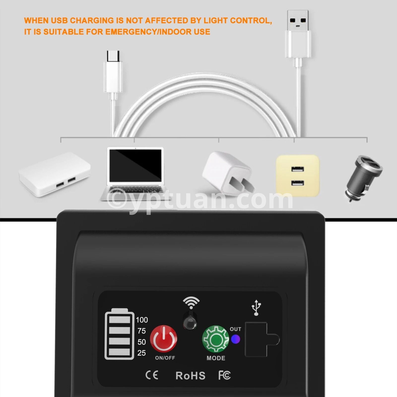 Emergency cable charging: Connect the charging cable through the USB interface to recharge the charge (applicable on rainy days)