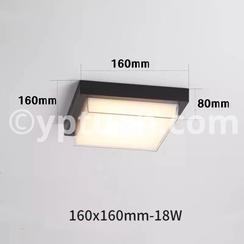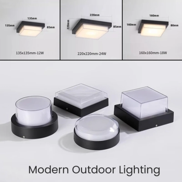 Square Outdoor LED Ceiling Lamp Surface Mounted Waterproof Sconces Bathroom Porch Garden Exterior Wall Lighting Fixture 110/220V Material:Aluminum+Acrylic Shape:Square Waterproof Rate:IP65 Size:Dia110mm/135mm/160mm/220mm Wattage:6W,12W,18W,24W Voltage:AC85-265V Color Temperature:Warm White 3000-3500K,Cold White 6000-6500K