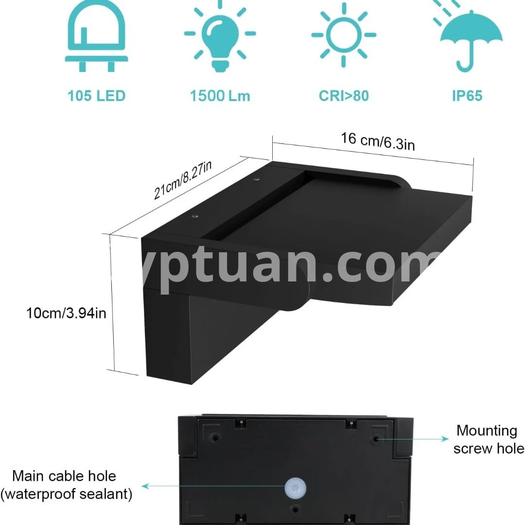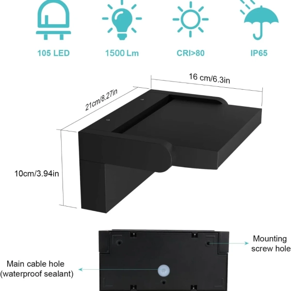 24W LED Outdoor Wall Light 1500LM IP65 Waterproof Wall Lamp Motion Sensor Outdoor Lighting Porch Lights Balcony Garden Lights