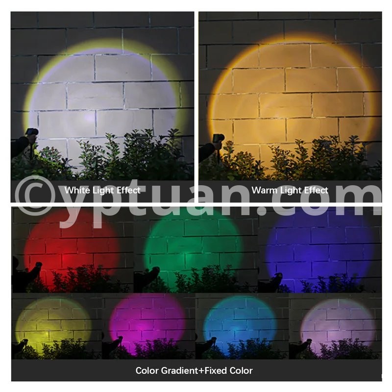 3. The lighting time after the battery is fully charged: 6-8 hours in high light mode, 8-10 hours in medium light mode, 10-12 hours in low light mode.4. There are two lighting modes for color: seven color gradient and fixed color, First, press the switch.