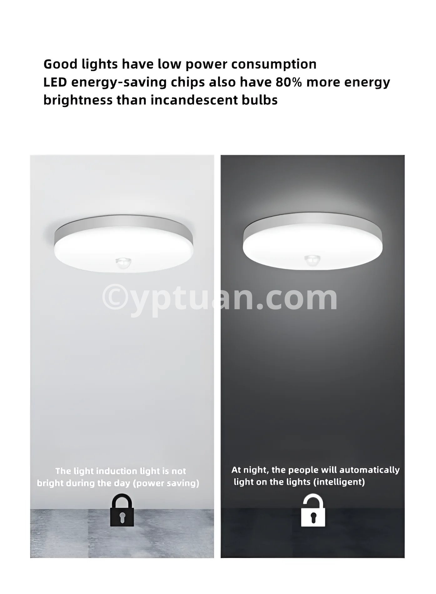 4.Energy saving, only work when people in darkness and sensor range.