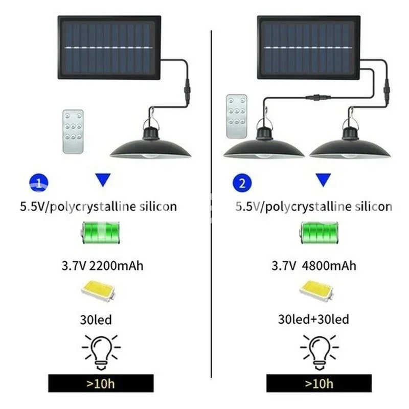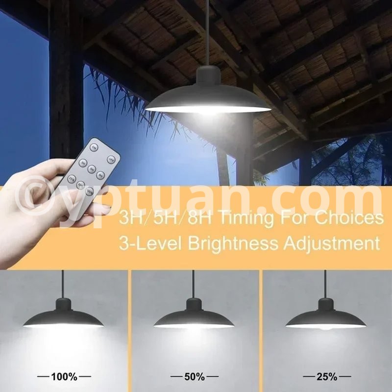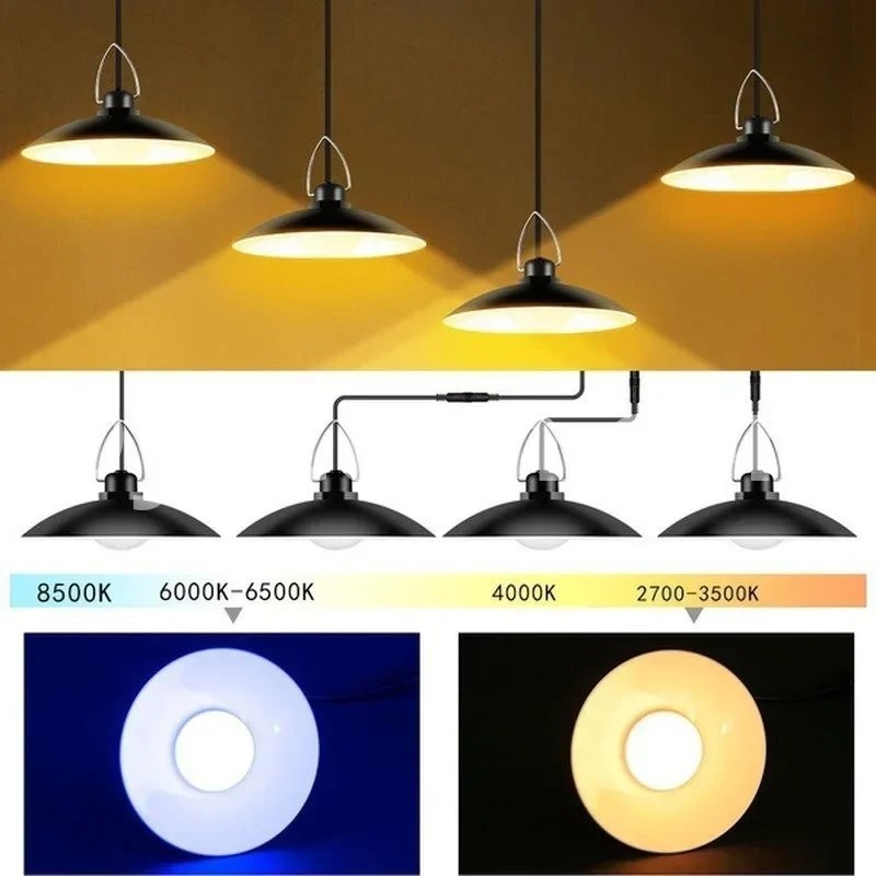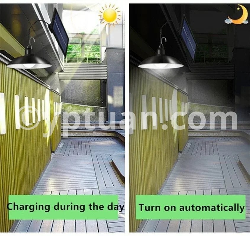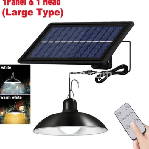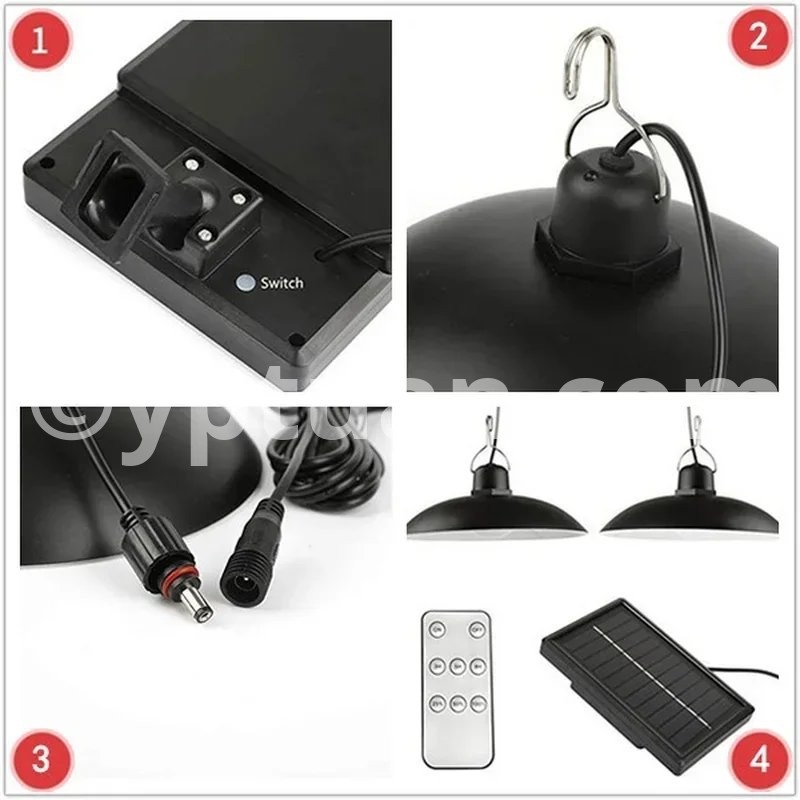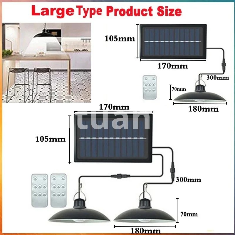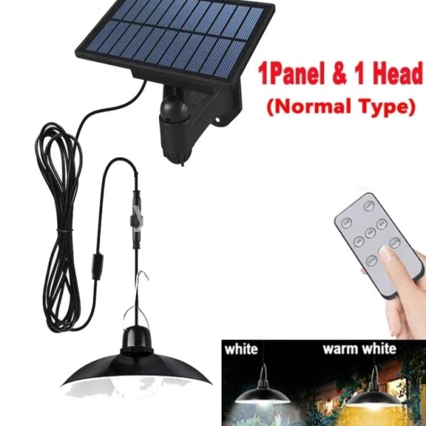 Solar Pane: 1.5W 5.5V Working Mode: Normally On Led: 30pcs SMD 2835 Lampshade Material: PC Led Light Color: White/Warm white Color Temperature: 3000K, 6000K Shell Material: PC+ABS Waterproof: IP65 Mode: Three functions Feature: SOLAR LED PENDANT LIGHT: The solar LED light is operated during the day by sunlight with a solar collector by storing electricity with a built-in lithium battery, lights up in the dark. Comes with remote control for easy and convenient use. Solar module made of polycrystalline silicon, conversion rate up to 18%, absorption of more light and faster charging. EASY INSTALLATION AND OPERATION: Screw the wall bracket to the installation surface and expose the solar panel to direct sunlight by adjusting it to the right angle. Hang the LED light where you need the light. Solar panel with 3m cable from solar panel to lamp, easy to install. LONG WORKING TIME: The solar garden light is fully charged within 6 hours in strong direct sunlight. white light , no light falloff, high color rendering, soft natural light, color rendering is more realisticSingle head and double head design with a lamp head and a retro lampshade to create a wider range of light sources and decorate your home. WATERPROOF AND WIDE APPLICATIONS: IP65 waterproof, can also be used on rainy days. Perfect for home, outdoor, outdoor, decorative lighting, camping, patio, umbrella, shed, umbrella, gazebo, trees, patio, garden, etc.