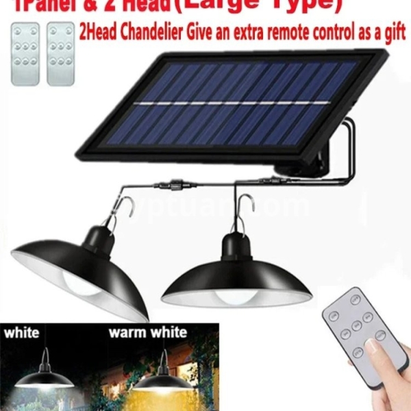 Q&A Question 1 : Why does the solar light can not work ? Answer : Please check the following items. 1. The solar energy is exhausted and needs to be placed outdoors for charging; 2. Did not press the switch behind the solar panel; 3. The solar panel is not covered, and the solar panel is exposed to light; 4. The remote control did not remove the insulating plastic sheet. Question 2 : Is the light flashing normal? Answer:It is normal. This is to test whether the light can work normally, you need to use it with the remote control. If the solar panel is in a half-bright and half-dark environment, it will flicker crazily, and you need to transfer it to a completely dark environment for it to work properly. Package included: 1x Solar Chandelier Light (1 head/ 2 head) 1/2x Remote control(2Head(Large Type) chandelier give an extra remote control as a gift, Other chandelier only one remote control.) 1x accessories Note: 1.Dear friend, this product is controlled by remote control, it does not support light/motion sensor temporarily, please pay attention before buying,Does not automatically light up. 2.Please allow 1-10mm difference due to manual measurement. 3.Due to light and screen difference, the item's color may be slightly different from the pictures.