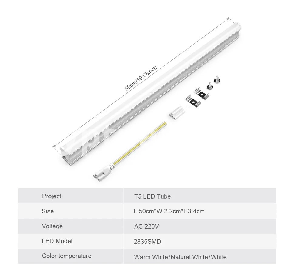 Specifications: Name:T5 LED Tube Voltage: AC85V-265V Lights Color: White/Warm White/Neutral White Color Temperature: White(6000K-6500K); Warm White(2700K-3500K); Neutral White(4000K-5000K) Power: 15W / PCS Length:50cm CRI(Ra): >80 LEDs type: 2835(High lumen 0.5W/LEDs) Material:Aluminum + Acrylic Features: 1.Energy saving:Up to 50% less energy consumption than traditional fluorescent tube. 2.Convenient replacement:Replace fluorescent tube,Convenient to use and protect. 3.Long life:Up to 50000 hours life. 4.Eye protection:No flicker,Harmless for eyes. Application: Commercial shops, hotels, exhibition halls, office and other places emphasis Home Furnishing lighting.